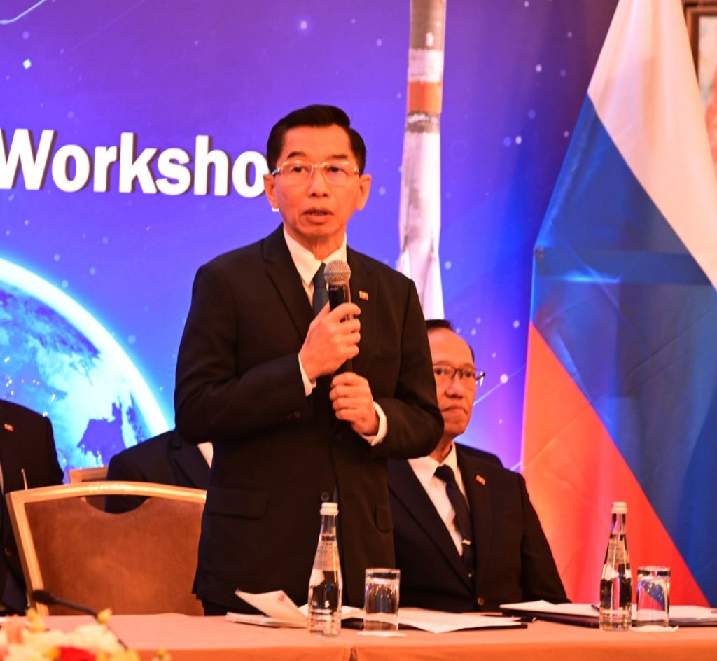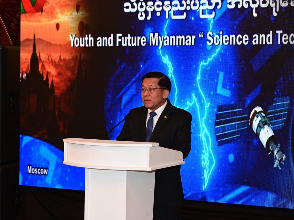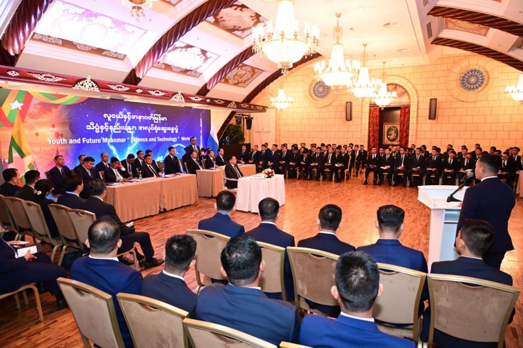 “လူငယ်နှင့်အနာဂတ်မြန်မာ-သိပ္ပံနှင့်နည်းပညာ” ခေါင်းစဉ်ဖြင့် သိပ္ပံပညာရပ်ဆိုင်ရာ အလုပ်ရုံဆွေးနွေးပွဲကို ယနေ့နံနက်ပိုင်းတွင် ရုရှားဖက်ဒရေးရှင်းနိုင်ငံ၊ မော်စကိုမြို့၊ RADISSON COLLECTION ဟိုတယ်၊ Conference Hall ၌ ကျင်းပပြုလုပ်ရာ ပြည် ထောင်စုသမ္မတ မြန်မာနိုင်ငံတော် ယာယီသမ္မတ နိုင်ငံတော်လုံခြုံရေးနှင့် အေးချမ်း သာယာရေးကော်မရှင်ဥက္ကဋ္ဌ ဗိုလ်ချုပ်မှူးကြီး မင်းအောင်လှိုင် တက်ရောက် အမှာ စကားပြောကြားသည်။