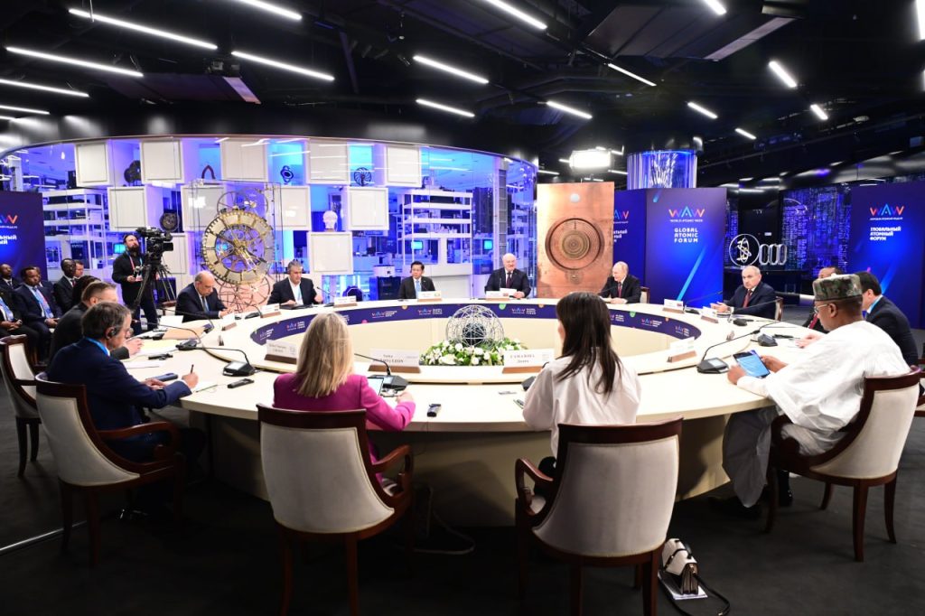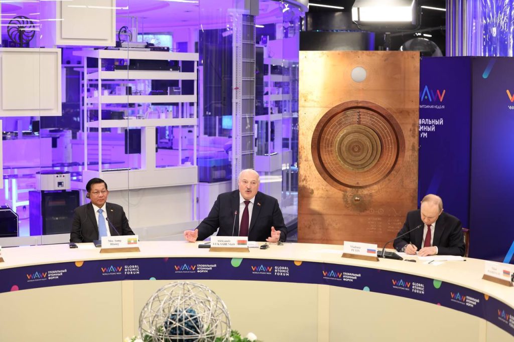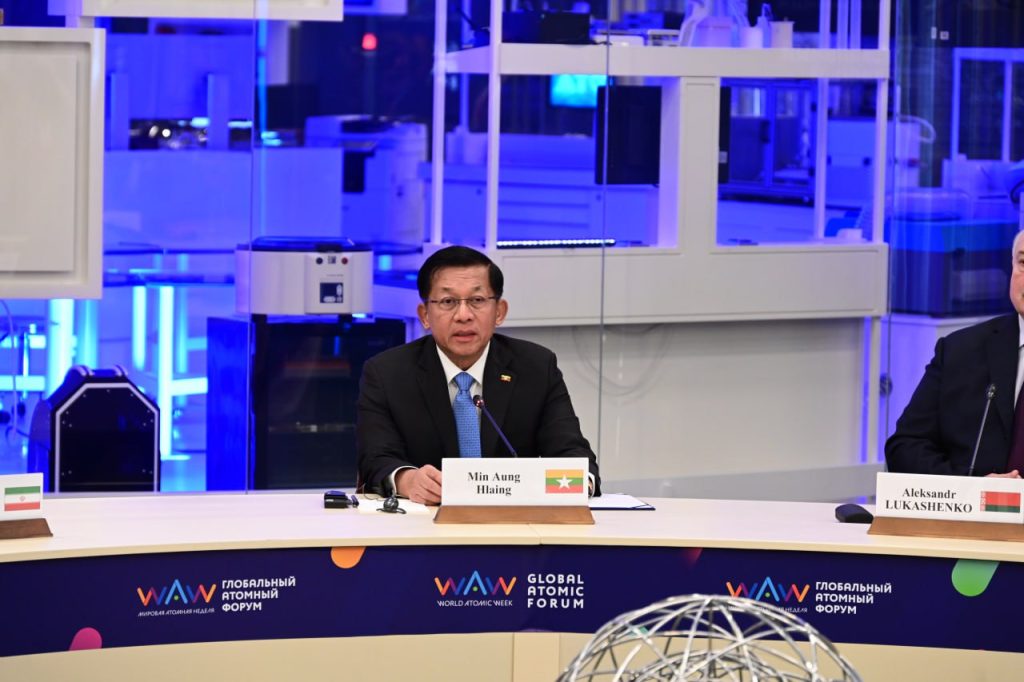“ကမ္ဘာ့အဏုမြူသီတင်းပတ်ဖိုရမ် (World Atomic week forum)” ကို ယနေ့ တွင် ရုရှားဖက်ဒရေးရှင်းနိုင်ငံ၊ မော်စကိုမြို့ရှိ Atom Museum ၌ ကျင်းပပြုလုပ်ရာ ပြည်ထောင်စုသမ္မတမြန်မာနိုင်ငံတော် ယာယီသမ္မတ နိုင်ငံတော်လုံခြုံရေးနှင့် အေးချမ်း သာယာရေးကော်မရှင်ဥက္ကဋ္ဌ ဗိုလ်ချုပ်မှူးကြီး မင်းအောင်လှိုင် သည် “နည်းပညာသစ်မွေးဖွားခြင်းမှ ကမ္ဘာသစ်အမြင်ဆီသို့ (From a New Technological Rollout to a New Worldview)” ခေါင်းစဉ်ဖြင့် ပြုလုပ်သည့် မျက်နှာစုံညီထိပ်သီး အစည်းအဝေးသို့ ပါဝင်တက်ရောက်ဆွေးနွေးသည်။