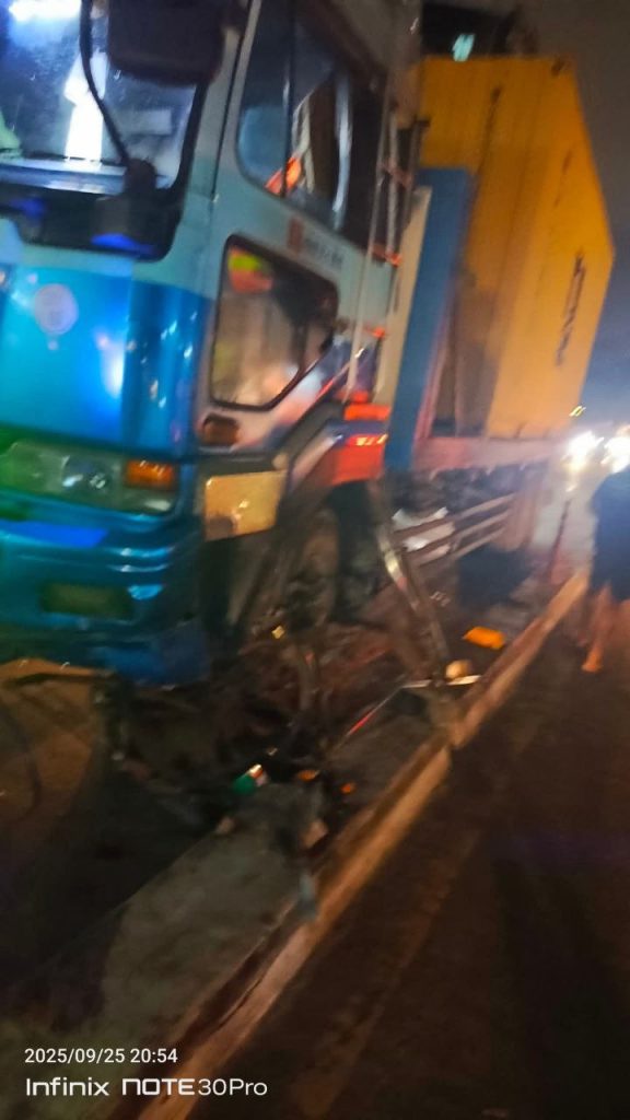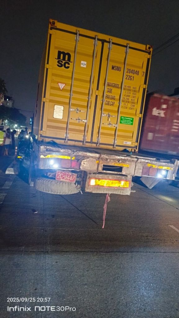 ပထမဖြစ်စဉ်က ည ၈ နာရီ မိနစ်၄၀ ခန့်မှာ ဖြစ်ပွားခဲ့ပြီး ကွန်တိန်နာတွဲကားက ဆိုက်ကားကို ချိတ်ဆွဲချကာတိုက်မှုဖြစ်ပွားတာလို့ အနာဂတ်အလင်းတန်းလူမှုကူညီရေးအသင်းက အသင်းရဲ့ ကူညီမှုကို လူမှုကွန်ရက်မှာ ဖော်ပြထားပါတယ်။