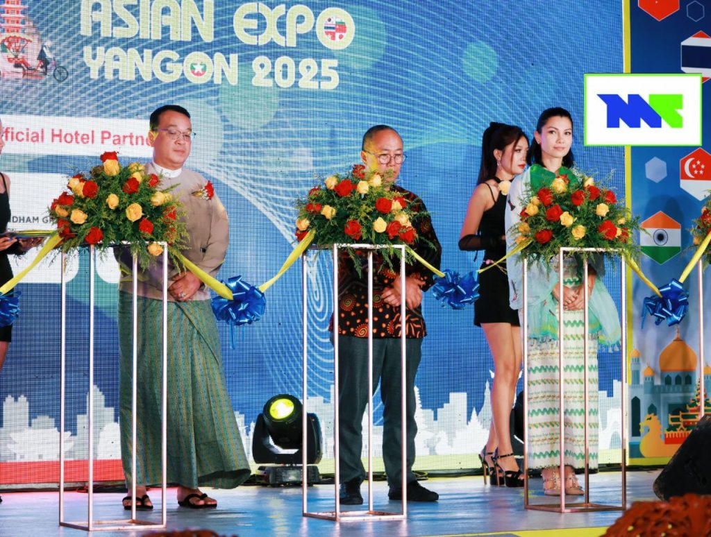 အာရှနိုင်ငံကြီးတွေရဲ့ ထုတ်ကုန်ပစ္စည်းတွေကို တစ်နေရာတည်းမှာ ဝယ်ယူနိုင်မယ့် Asian Expo Yangon 2025 ပွဲကြီး ယနေ့ စက်တင်ဘာ ၂၆ ရက် နံနက်ပိုင်းက ရန်ကုန်မြို့ Yangon Convention Center (YCC)မှာ ကျင်းပခဲ့ရာ တိုင်းဒေသကြီးအစိုးရအဖွဲ့ သယံဇာတရေးရာဝန်ကြီး ဦးဇော်ဝင်း၊ တိုင်းပညာရေးမှူး ဒေါက်တာချိုချိုမြတ်အောင်၊ သရုပ်ဆောင် သန္တာလှိုင်နဲ့ တာဝန်ရှိသူတွေ ဖဲကြိုးဖြတ်ဖွင့်လှစ်ခဲ့ပါတယ်။