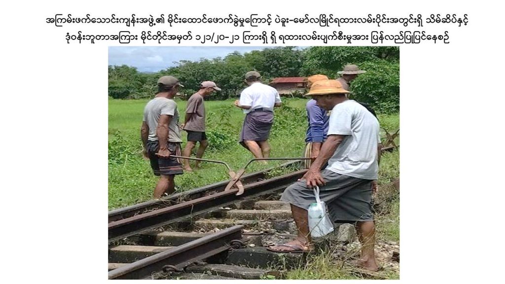 ယမန်နေ့ စက်တင်ဘာ ၂၆ ရက်နေ့ ည ၈ နာရီခွဲအချိန်ခန့်တွင် မွန်ပြည်နယ်၊ သထုံမြို့နယ်၊ သိမ်ဆိပ်ဘူတာနှင့် ဒုံဝန်းဘူတာအကြား၊ ပဲခူး-မော်လမြိုင် ရထားလမ်းပိုင်းအတွင်း မိုင်တိုင်အမှတ် ၁၂၁/၂၀-၂၁ ကြားရှိ ရထားသံလမ်းအား အကြမ်းဖက်သောင်းကျန်းသူအဖွဲ့က မိုင်းဖြင့်ဖောက်ခွဲဖျက်စီးထားသဖြင့် ရထားလမ်းထိခိုက်ပျက်စီးခဲ့ပြီး သိမ်ဆိပ်နှင့် ဒုံဝန်းအကြား ရထားလမ်းပိုင်းအား ယနေ့နံနက်ပိုင်းတွင် ယာယီပိတ်ထားရကြောင်း သိရှိရသည်။