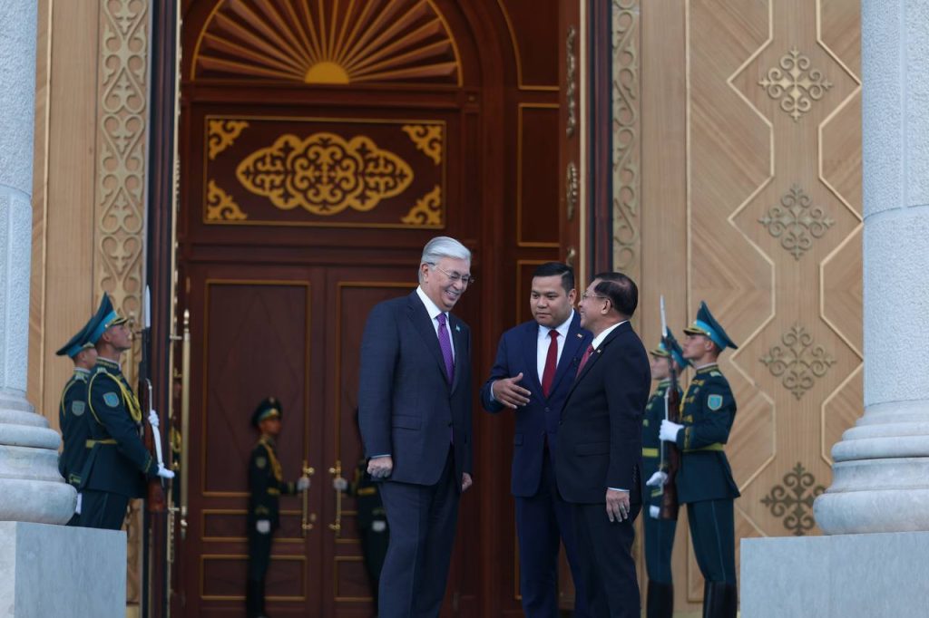 ပြည်ထောင်စုသမ္မတမြန်မာ နိုင်ငံတော်ယာယီသမ္မတ နိုင်ငံတော်လုံခြုံရေးနှင့် အေးချမ်းသာယာရေးကော်မရှင် ဥက္ကဋ္ဌ ဗိုလ်ချုပ်မှူးကြီး မင်းအောင်လှိုင်သည် ယမန်နေ့ မွန်းလွဲပိုင်းတွင် ကာဇက်စတန်သမ္မတနိုင်ငံ သမ္မတ H.E.Mr. Kassym-Jomart Tokayev နှင့် ကာဇက်စတန်သမ္မတနိုင်ငံ၊ သမ္မတနန်းတော်၌ တွေ့ဆုံခဲ့ကာ နှစ်နိုင်ငံအကြား အကျိုးဖြစ်ထွန်းစေမည့် ကဏ္ဍပေါင်းစုံတွင် နီးကပ်စွာပူးပေါင်းဆောင်ရွက်သွားရန် ရင်းနှီး နွေးထွေးစွာ ဆွေးနွေးခဲ့ပြီးနောက် ကာဇက်စတန် သမ္မတနန်းတော်မှ ပြန်လည်ထွက်ခွာသည့် ယာယီသမ္မတကို ကြိုဆိုပို့ဆောင်ရေးကာဇက်စတန်သမ္မတက ကြိုဆိုဂုဏ်ပြုယာဥ်တန်းအထိ လိုက်ပါပို့ဆောင်ပေးခဲ့သည်။