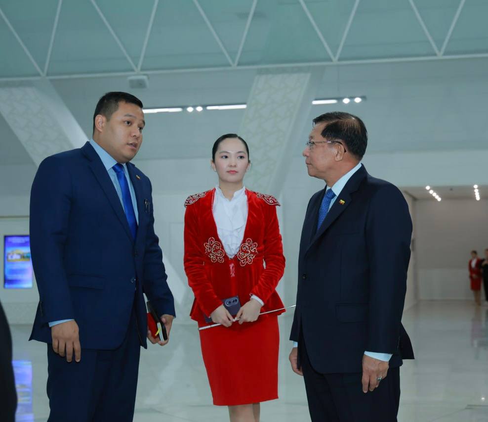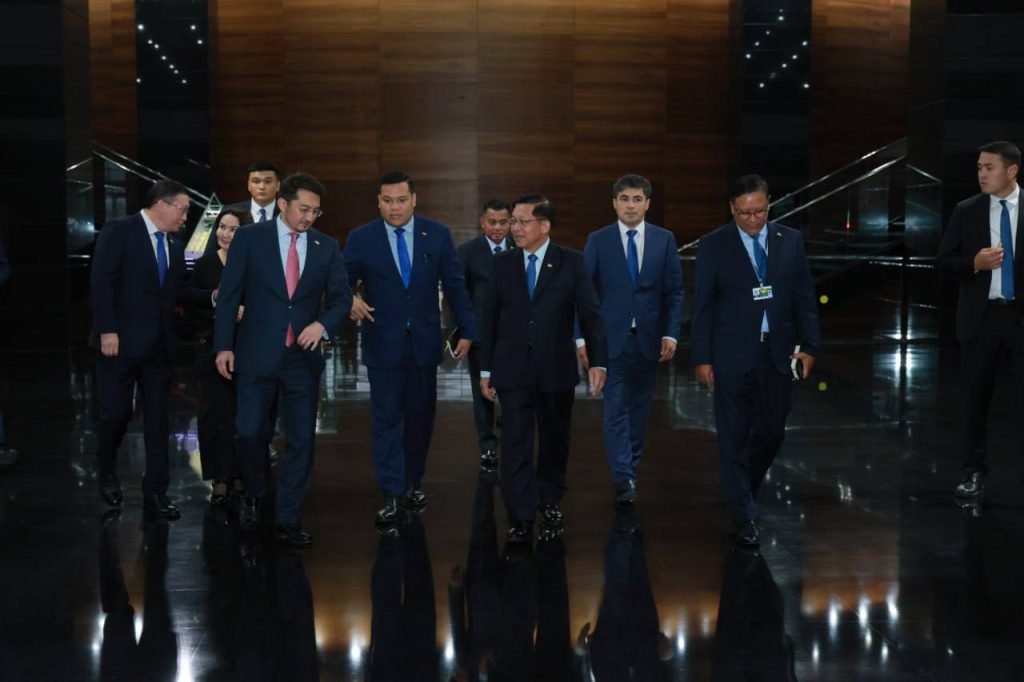 ယာယီသမ္မတ ဗိုလ်ချုပ်မှူးကြီးမင်းအောင်လှိုင်နှင့် အဖွဲ့ဝင်များသည် အမျိုးသားပြန်လည်သင့်မြတ်ရေးနှင့် ငြိမ်းချမ်းရေးနန်းတော်သို့ ရောက်ရှိကြရာ တာဝန်ရှိသူများက ကြိုဆိုနှုတ်ဆက်ကြခဲ့ကြပြီးနောက် တာဝန်ရှိသူများက ကာဇက်စတန်နိုင်ငံ၏ သမိုင်းကြောင်းဆိုင်ရာနှင့် အမျိုးသားပြန်လည်သင့်မြတ်ရေးနှင့် ငြိမ်းချမ်းရေးနန်းတော်ဆိုင်ရာများ၊ နန်းတော်အတွင်း ငြိမ်းချမ်းရေးနှင့် ဘာသာရေးဆိုင်ရာ အခမ်းအနားများ ကျင်းပပြုလုပ်ခဲ့မှုတို့နှင့် ပတ်သက်၍ ရှင်းလင်းတင်ပြရာ ယာယီသမ္မတက သိရှိလိုသည်များ ပြန်လည်မေးမြန်းဆွေးနွေးခဲ့သည်။