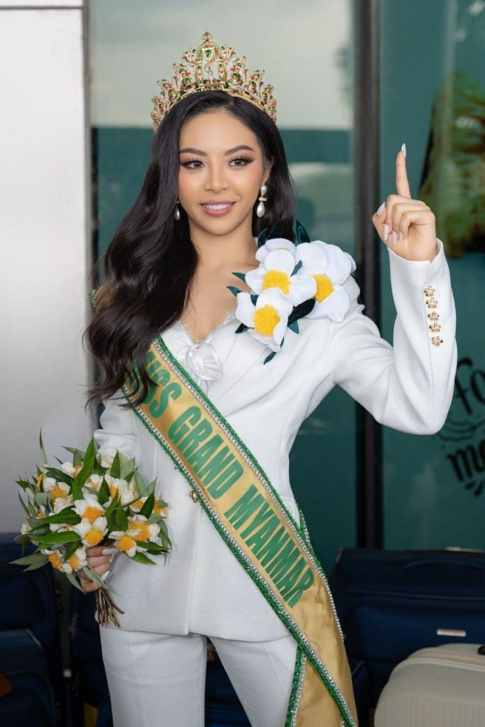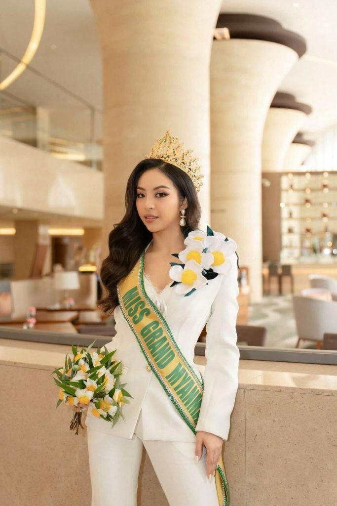 “ကျွန်တော်တို့ရဲ့ ၂၀၂၅ ခုနှစ်ရဲ့ Miss Grand Myanmar အလှမယ် JK Sophia ရဲ့ စပြီး ပွဲဦးထွက်သွားပြိုင်မှာဖြစ်ပါတယ်။ ထိုင်းနိုင်ငံမှာ ယှဉ်ပြိုင်သွားမှာပါ။ ဒီပြိုင်ပွဲမှာ မြန်မာနိုင်ငံက အဖိုးတန်ရတနာတွေ၊ မြန်မာ့အဖိုးတန်ပန်းတွေ၊ ရာသီပေါ်တန်ဖိုးရှိတဲ့ ပန်းတွေကို ကိုယ်စားပြုဝတ်ဆင်သွားမှာပါ။ ပုလဲရယ်၊ အဓိပ္ပါယ်ရှိတဲ့ ကံ့ကော်ပန်းကို ကိုယ်စားပြု စတင်ထွက်ခွာတာပါ။ ရှေ့က ကြိုးစားသွားကြသူတွေကို ကျေးဇူးတင်တယ်။ သူတို့ကြောင့် အများကြီးအားဖြစ်ရတာ။ JK အပေါ် အများကြီး Effective ဖြစ်စေတာပေါ့နော်”လို့ မရမ်ဆိုင်းနော် (National Director)က ပြောပါတယ်။