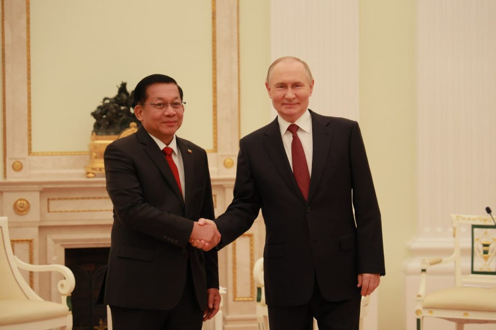 “ရုရှားသမ္မတကြီး ပူတင်နဲ့ သီးခြားတွေ့ဆုံနိုင်ခဲ့တာရှိပါတယ်။ မတ်လမှာ တွေ့ဆုံခဲ့ပြီးဖြစ်ပြီးတော့ တွေ့ဆုံခဲ့တဲ့ရလဒ်တွေကို မူတည်ပြီးတော့ တိုးတက်မှုအခြေအနေ တွေပေါ့ဗျာ။ ဒါတွေကို ဘယ်လိုသုံးသပ်ကြမလဲ။ နှစ်ဖက်သုံးသပ်ပြီးတော့ ဒီထက်ပိုပြီးတော့ ပူးပေါင်းဆောင်ရွက်မှုနယ်ပယ်တွေကို တိုးမြှင့်ဆောင်ရွက်နိုင်ဖို့ ဆွေးနွေးခဲ့တာဖြစ်ပါတယ်။ ပထမဦးဆုံးအနေနဲ့က ကူးသန်းရောင်းဝယ်ရေးနဲ့ ရင်းနှီးမြှုပ်နှံမှုကိစ္စ၊ စွမ်းအင်၊ သယ်ယူပို့ဆောင်ရေး၊ ကာကွယ်ရေးဆိုင်ရာ ပူးပေါင်းဆောင်ရွက်ရေးကိစ္စ၊ အာကာသနှင့် အဏုမြူဆိုင်ရာ ပူးပေါင်းဆောင်ရွက်ရေးကိစ္စ ဒါတွေကို ကျွန်တော်တို့ ဆွေးနွေးနိုင်ခဲ့တာရှိပါတယ်” ဟု ယာယီသမ္မတ ဗိုလ်ချုပ်မှူးကြီးမင်းအောင်လှိုင်က ပြောကြားသည်။