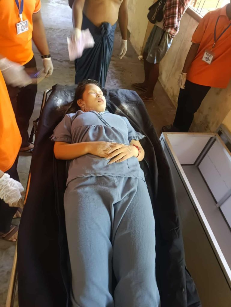 မြစ်ကြီးနားမြို့ ဆုတောင်းပြည့်အနီးတွင် ဓားဖြင့် ထိုးသတ်ခံခဲ့ရခြင်းဖြစ်ပြီး ယင်းကို မျိုးဆက်သစ် လူမှုကယ်ဆယ်ရေးအသင်းက မြစ်ကြီးနားဆေးရုံကြီး ရင်ခွဲရုံသို့ပို့ဆောင်ကာ ယင်းမှ စစ်ဆေးမှုများပြုလုပ်ပြီးနောက် ရာဒါကောင်းသုသာန်သို့ ပို့ဆောင်သင်္ဂြိုဟ်ခဲ့ကြောင်း သိရသည်။