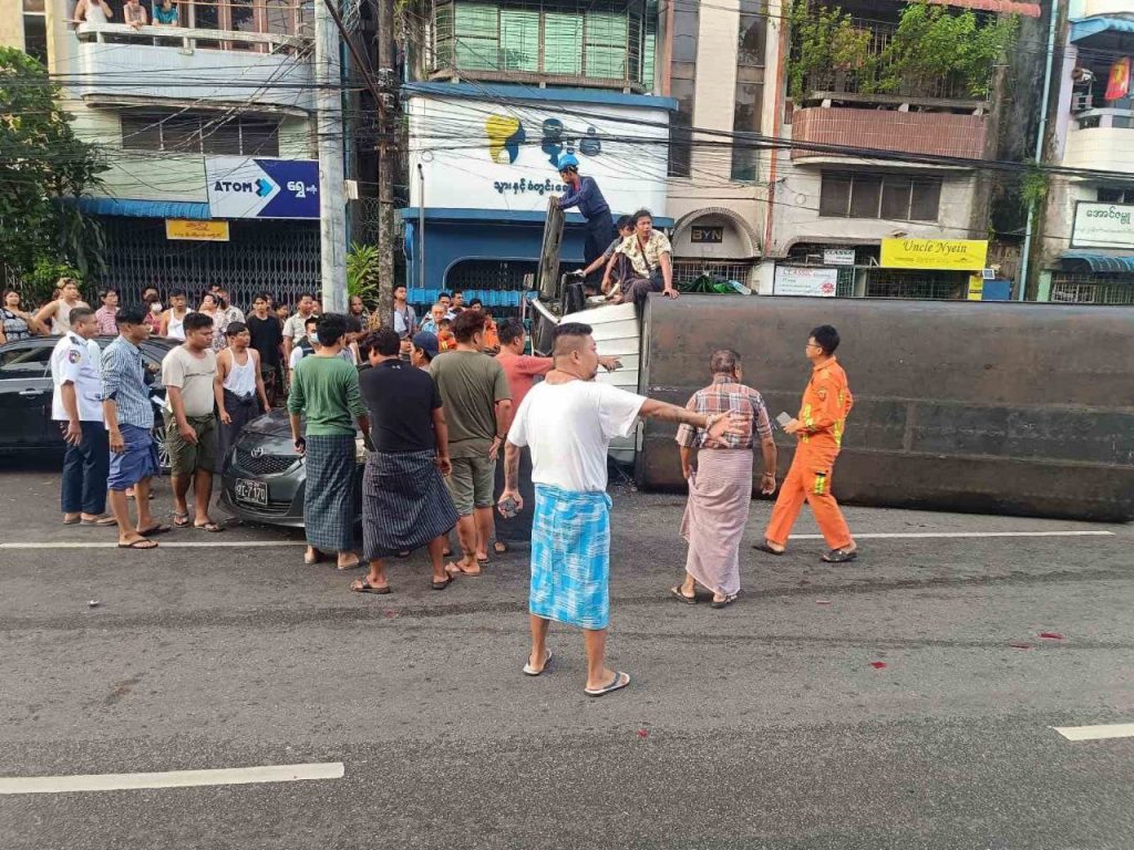 လွန်ခဲ့တဲ့ ခုနစ်ရက် (စက်တင်ဘာ၂၃ ရက်) မနက်အစောပိုင်းကလည်း ရန်ကုန်တိုင်းဒေသကြီး၊ မင်္ဂလာတောင်ညွန့်မြို့နယ်၊ ပုသိမ်ညွန့်ရပ်ကွက်၊ သမိန်ဗရမ်းလမ်း၊ ကြက်ဘဲဈေးအနီးမှာ ဈေးကြိုယာဉ် ၃ စီး ပြိုင်မောင်းရင်း အချင်းချင်း ဆင့်တိုက်တိုက်မှုဖြစ်ပွားပြီး နှစ်ဦးသေဆုံးကာ သုံးဦး ဒဏ်ရာရတဲ့ဖြစ်စဉ် ဖြစ်ပွားခဲ့ပါသေးတယ်။