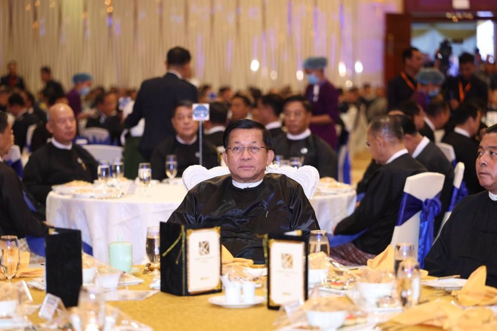 (၆၁) နှစ်မြောက် မြန်မာနိုင်ငံရဲတပ်ဖွဲ့နေ့ အထိမ်းအမှတ်ဂုဏ်ပြုညစာစားပွဲ အခမ်းအနားကို ယနေ့ ညပိုင်းတွင် နေပြည်တော်ရှိ မင်္ဂလာသီရိဟိုတယ်၌ ကျင်းပရာ ပြည်ထောင်စုသမ္မတ မြန်မာနိုင်ငံတော် ယာယီသမ္မတ နိုင်ငံတော်လုံခြုံရေးနှင့် အေးချမ်းသာယာရေးကော်မရှင် ဥက္ကဋ္ဌ ဗိုလ်ချုပ်မှူးကြီးမင်းအောင်လှိုင် တက်ရောက်ချီးမြှင့်ခဲ့သည်။