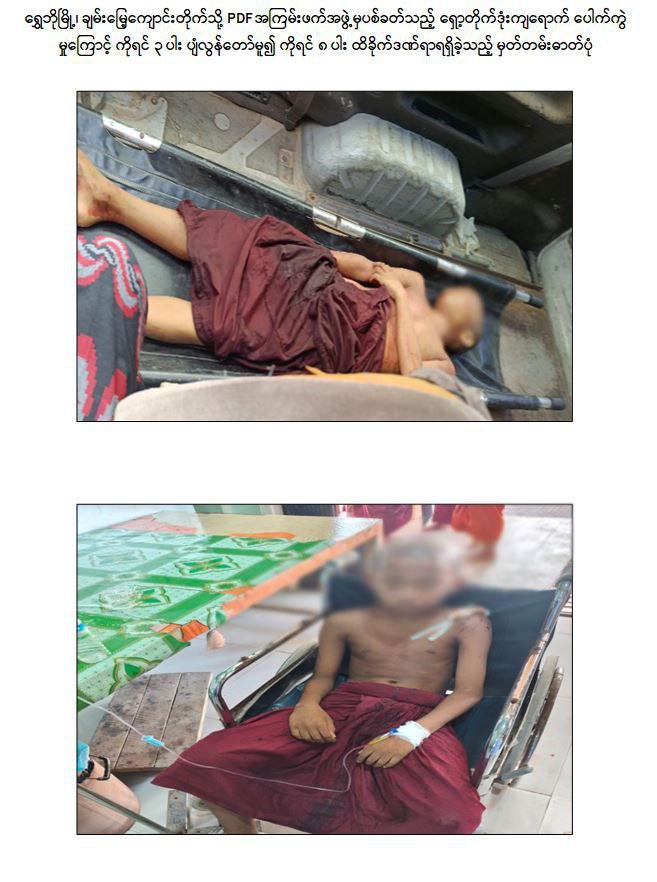 ရွှေဘိုမြို့၌ PDF များ၏ အသိတရားကင်းမဲ့စွာဖြင့် လက်လုပ်ရှော့တိုက်ဒုံးနှင့် ပစ်ခတ်မှုကြောင့် သာသနာတော်အကျိုးသယ်ပိုးဆောင်ရွက်နေသည့် သာမဏေကိုရင် (၃) ပါး ပျံလွန်တော်မူ၍ သာမဏေကိုရင် (၈) ပါး ထိခိုက်ဒဏ်ရာများရရှိခဲ့ရသည်။