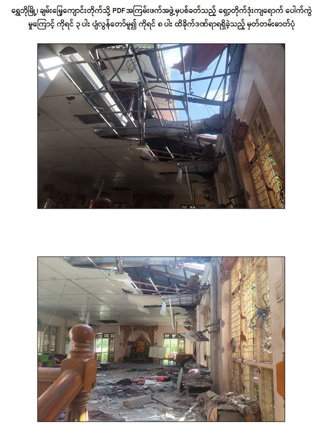 PDF များသည် ယခုကဲ့သို့ စစ်ရေးနှင့် မသက်ဆိုင် သည့် သာသနာနိကအဆောက်အအုံနေရာသို့ အသိတရားကင်းမဲ့စွာဖြင့် အကြမ်းဖက် လုပ်ရပ်များ ဆောင်ရွက်ခဲ့ခြင်းအတွက် ဒေသခံပြည်သူများအနေဖြင့် ပြင်းပြင်းထန်ထန် ကန့်ကွက်ရှုတ်ချလျက်ရှိကြောင်းနှင့် အထက်ပါဖြစ်စဉ်မှ အကြမ်းဖက်မှုကျူးလွန်ခဲ့သူများအား ဥပဒေနှင့်အညီ ထိရောက်စွာအရေးယူနိုင်ရေး လုံခြုံရေးတပ်ဖွဲ့ဝင်များက တာဝန်သိဒေသခံပြည်သူများနှင့် ပူးပေါင်း၍ စုံစမ်းဖော်ထုတ်လျက်ရှိပြီး နယ်မြေ တည်ငြိမ်အေးချမ်းရေးနှင့် ပြည်သူ့အသက်အိုးအိမ်စည်းစိမ် ကာကွယ်စောင့်ရှောက်ရေး အတွက် လိုအပ်သည့် နယ်မြေလုံခြုံရေးလုပ်ငန်းများကိုလည်း တိုးမြှင့် ဆောင်ရွက် လျက်ရှိကြောင်း သတင်းရရှိသည်။
