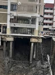 ထိုနေရာရှိတာဝန်ရှိသူများက ရဲစခန်းအဆောက်အအုံ လေးထပ်တိုက်က အောက်တိုဘာလ ၄ ရက်ညတွင် ရွေ့လျားမှုပြုခဲ့ပြီး အက်ကွဲသံများလည်းကြားရကြောင်း ပြောခဲ့ကြသည်။ ဤရက်ပိုင်းတွင် မိုးရွာခဲ့အပြီး ရဲစခန်းအဆောက်အအုံအောက်ရှိမြေထုက တစ်ဖြည်းဖြည်းနိမ့်ကျလာကာ အဆောက်အအုံမှာအောက်သို့ ကျွံဝင်လာခဲ့ကြောင်း ပြောခဲ့ကြသည်။