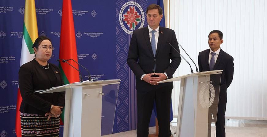 မြန်မာ-ဘယ်လာရုစ် နှစ်နိုင်ငံအကြား လက်မှတ်ရေးထိုးပြီးဖြစ်သည့် ဖွံ့ဖြိုးမှုပူးပေါင်းဆောင်ရွက်ရေးစာလွှာကို အခြေခံရေဆွဲနေသည့် လမ်းပြမြေပုံ ( ၂၀၂၆-၂၀၂၈) အပြီးသတ်ရေးဆွဲနိုင်ရေး ရင်းနှီးမြှုပ်နှံမှုနှင့် နိုင်ငံခြားစီးပွားဆက်သွယ်ရေးဝန်ကြီးဌာန ပြည်ထောင်စုဝန်ကြီး ဒေါက်တာဝါဝါမောင်နှင့် ဘယ်လာရုစ် နိုင်ငံခြားရေးဝန်ကြီးတို့ ဆွေးနွေးခဲ့သည်။