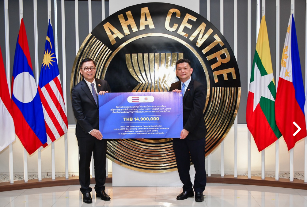 ထိုင်းနိုင်ငံ၏ ထပ်မံထောက်ပံ့မှု ထိုငွေကြေးကိုယမန်နေ့တွင် ထိုင်းနိုင်ငံခြားရေးဝန်ကြီးသစ်ဖြစ်သူ မစ္စတာ ဆီဟာဆက် ဖူအွန်ကက်ကီယိုသည် ထိုင်းဘုရင့်အစိုးရ၏ ငွေကြေးထောက်ပံ့မှု ဘတ်ငွေ ၁၄,၉၀၀,၀၀၀ (အမေရိကန်ဒေါ်လာ ၄၆၀,၀၀၀ ခန့်) ကို အင်ဒိုနီးရှားနိုင်ငံ၊ ဂျကာတာမြို့ရှိ သဘာဝဘေးအန္တရာယ်စီမံခန့်ခွဲရေးဆိုင်ရာ အာဆီယံ လူသားချင်းစာနာထောက်ထားမှု အကူအညီပေးရေး ညှိနှိုင်းရေးစင်တာ (AHA Centre) ၏ အမှုဆောင်ဒါရိုက်တာဖြစ်သူ မစ္စတာ လီယမ်မင်း (Mr. Lee Yam Ming) ထံ ပေးအပ်ခဲ့ခြင်းဖြစ်သည်။
