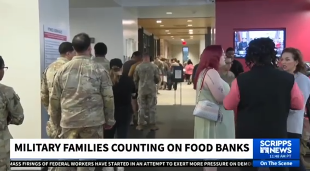 ထိုနည်းတူ ရေတပ်မှ နည်းပညာရှင်တစ်ဦးနှင့် လက်ထပ်ထားသူလည်းဖြစ်သည့် Frazier သည် အခမဲ့ Hunger Heroes ရွေ့လျားစျေးဆိုင် (အရှေ့တောင်ပိုင်း ဗာဂျီနီးယားနှင့် အရှေ့ပိုင်းကမ်းရိုးတန်း အစားအသောက်ဘဏ်၏ အစီအစဉ်) မှ အစားအသောက်ရယူရန် စောင့်ဆိုင်းနေစဉ် ၎င်း၏ကလေးများထဲမှ တစ်ဦးကို ပွေ့ချီထားသည်။ စီစဉ်သူများသည် အစိုးရယန္တရားလည်ပတ်မှု ကြာရှည်လာသည်နှင့်အမျှ လိုအပ်ချက် တိုးလာမည့်အတွက် ပြင်ဆင်နေကြသည်။