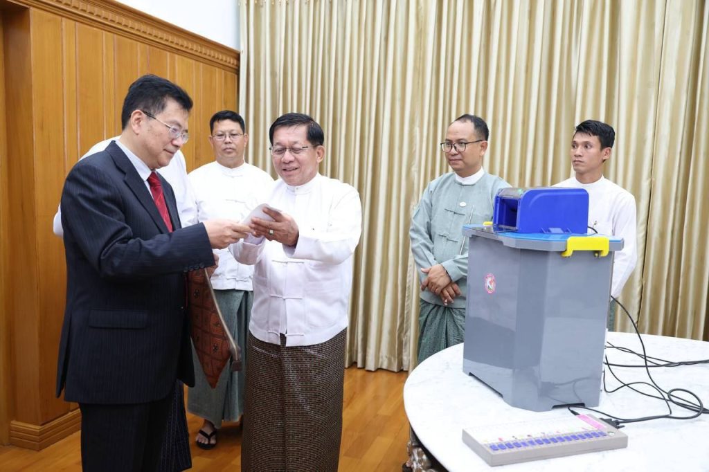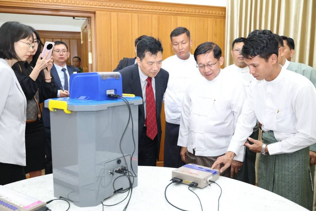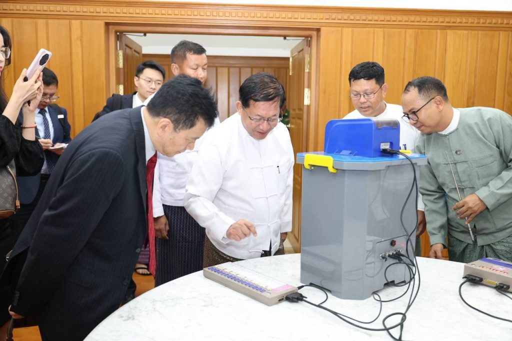 ◾️ တွေ့ဆုံပွဲအပြီးတွင် ရွေးကောက်ပွဲ၌ အသုံးပြုမည့် မြန်မာအီလက်ထရောနစ်မဲပေးစက်များကို လက်တွေ့ရှင်းလင်းပြသခဲ့