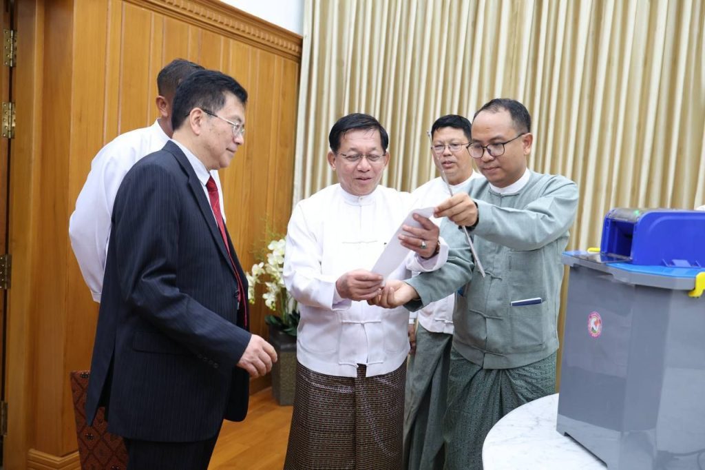 တွေ့ဆုံပွဲအပြီးတွင် ယာယီသမ္မတက တရုတ်နိုင်ငံခြားရေးဝန်ကြီးဌာန၊ အာရှရေးရာအထူးကိုယ်စားလှယ်အား ရွေးကောက်ပွဲ ကျင်းပပြုလုပ်စဉ် အသုံးပြုမည့် မြန်မာအီလက် ထရောနစ်မဲပေးစက်(MEVM) စက်များအား ပြသရာ ရွေးကောက်ပွဲကော်မရှင်မှ တာဝန်ရှိသူများက မဲပေးစက်၏ လုပ်ငန်းလုပ်ဆောင်မှု အဆင့်ဆင့်အား ရှင်းလင်းပြသခဲ့ပြီး တရုတ်နိုင်ငံခြားရေးဝန်ကြီးဌာန၊ အာရှရေးရာအထူးကိုယ်စားလှယ်၏ သိရှိလိုသည့် မေးမြန်းမှုများကို ပြန်လည်ဖြေကြားခဲ့ကြောင်း သိရသည်။