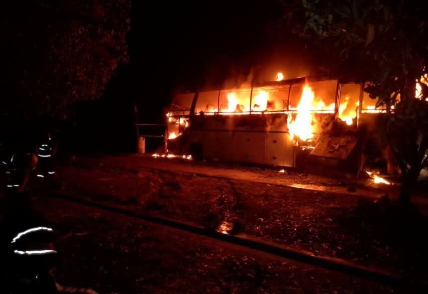 နေပြည်တော်-ရန်ကုန်လမ်းမပိုင်း အမြန်လမ်းမကြီးမိုင်တိုင်အမှတ် ၁၈၃ မိုင် ၇ ဖာလုံနဲ့ ၁၈၄ မိုင်အကြားမှာ ခရီးသည်တင်ယာဉ်တစ်စီး မီးလောင်မှု ဖြစ်ပွားခဲ့တယ်လို့ မြန်မာနိုင်ငံမီးသတ်တပ်ဖွဲ့ရဲ့ ထုတ်ပြန်ချက်အရ သိရပါတယ်။