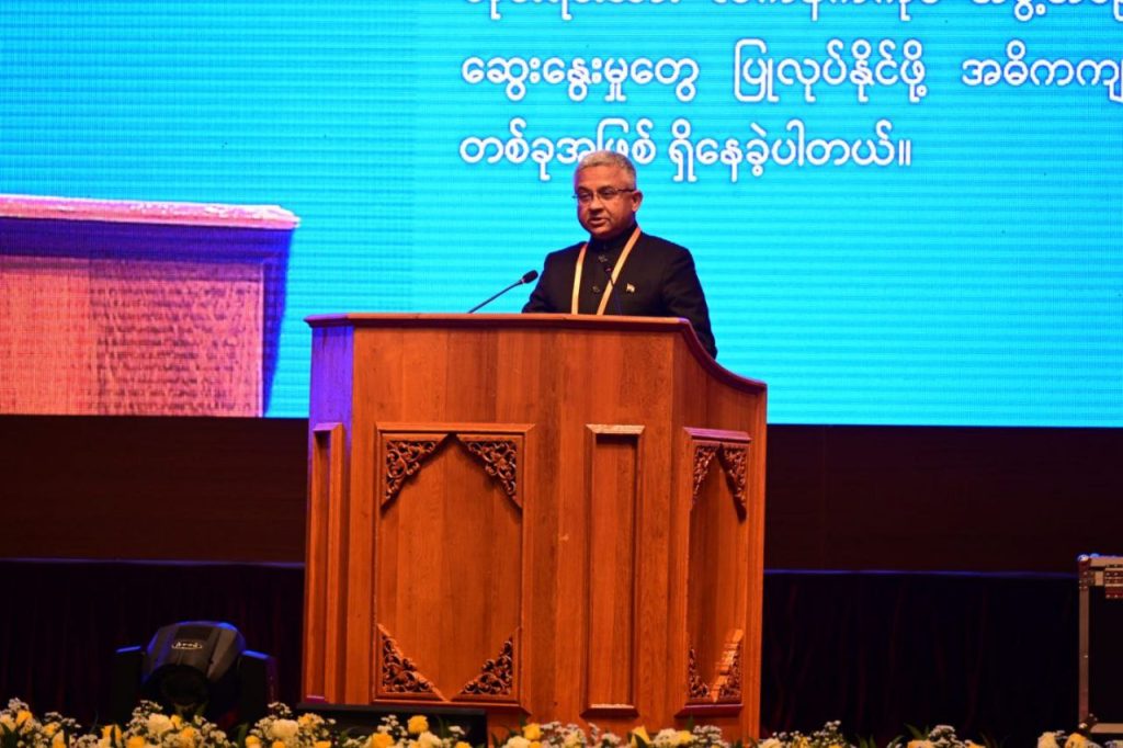 “ဒါကြောင့် မြန်မာနိုင်ငံမှာ အကြမ်းဖက်မှုတွေရပ်စဲပြီး ငြိမ်းချမ်းတည်ငြိမ်မှု ထိန်းသိမ်းထားနိုင်ရေးဟာ ကျွန်တော်တို့အတွက် အင်မတန်မှကို အရေးပါပါတယ်” ဟု အိန္ဒိယသံအမတ်ကြီးက ပြောကြားသည်။