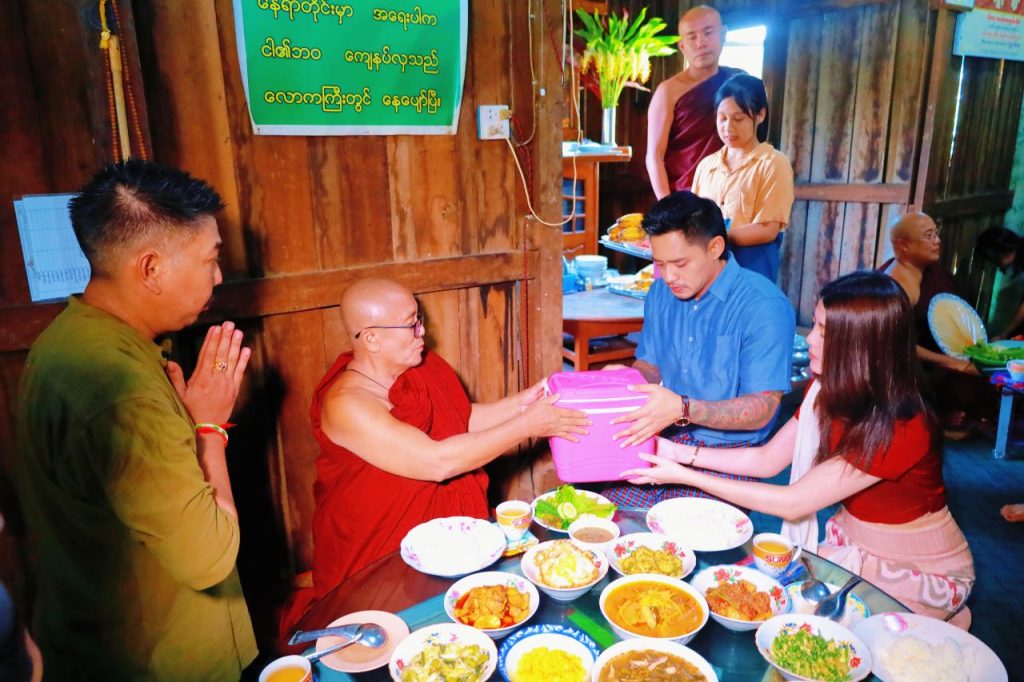 လိုတရဟင်္သာတ ပရဟိတ ဓမ္မရိပ်သာ မိဘမဲ့ဂေဟာရှိ ဆရာတော်သံဃာတော်အရှင်သူမြတ်တွေ အပါး ၁၀၀ ကျော်ကို ထမင်း၊ ကြက်သားဟင်း၊ ဝက်သားဟင်း၊ ချဉ်ရည်ဟင်း၊ ငါးခြောက်ငရုပ်သီးကြော်၊ ငပိရည်၊ အစိမ်းကြော်၊ အချဉ်သုပ်စတာတွေ နေ့ဆွမ်းဆက်ကပ်ခဲ့သလို ကျောင်းသား/ကျောင်းသူ ၅၀၀ ကိုလည်း နေ့လယ်စာအာဟာရကုသိုလ်ပြုပေးခဲ့ပါတယ်။