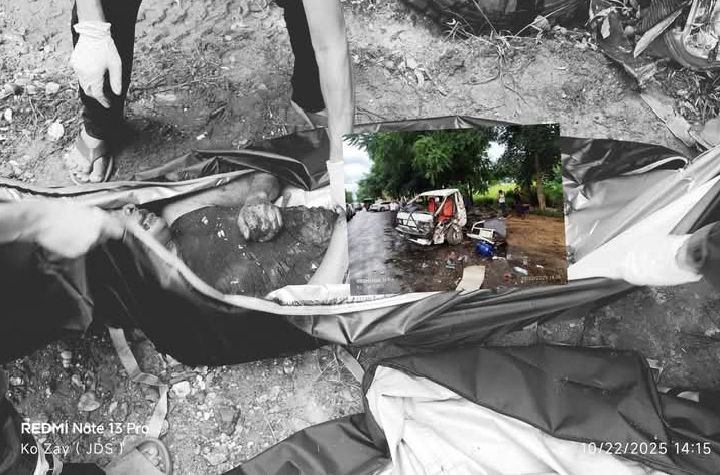 ဆီဘောက်ဆာယာဉ်၊ လိုက်ထရက်ကားနဲ့ ဆိုင်ကယ်တိုက်မိရာက လူ ၆ ဦး သေဆုံးပြီး ၃ ဦး ဒဏ်ရာရတဲ့ ဖြစ်စဉ် ဒီနေ့ နေ့လယ် ၁ နာရီ မိနစ် ၃၀ အချိန်ခန့်က မကွေးတိုင်းဒေသကြီး၊ ကွေးမြို့၊ ကံလှရွာထိပ်ကွေ့အနီးမှာ ဖြစ်ပွားခဲ့တယ်လို့ မြေပြင်အကူအညီရောက်ရှိခဲ့တဲ့ လူမှုကူညီရေး အသင်းတချို့ထံကနေ သိရပါတယ်။