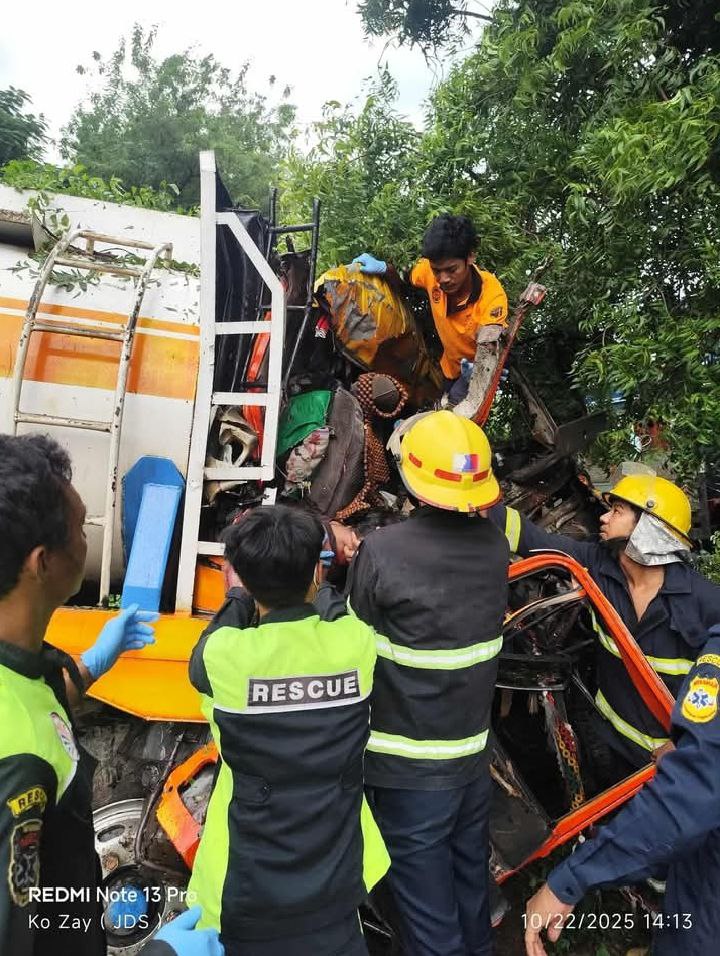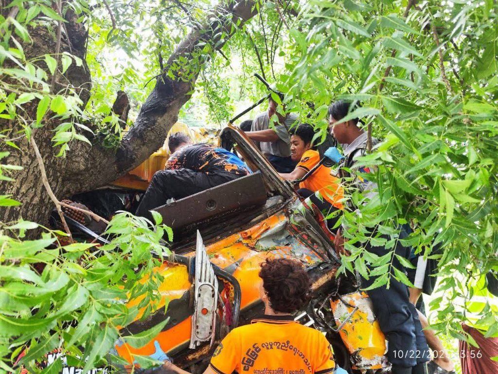 ဆီဘောက်ဆာကားနဲ့ လိုက်ထရက်ကားတို့ တိုက်မိရာမှာ အသေအဆုံးများကြောင်း ဆက်သွယ်ရေးကွန်ရက်ကနေ သတင်းရရှိကြတာကြောင့် မကွေးမြို့အခြေစိုက် မြေပြင်လူမှုကူညီရေးအသင်း၊ ရောင်စုံမေတ္တာ လူမှုကူညီရေးအသင်းနဲ့ မိတ်ဖက်အသင်းမှ ပရဟိတအသင်းသားတွေက သက်ဆိုင်ရာတာဝန်ရှိသူတွေကို အကူအညီပေးနိုင်ဖို့ ထွက်ခွာခဲ့ရာ ယာဉ်တိုက်မိတဲ့ အရှိန်ကြောင့် လိုက်ထရက်ယာဉ်မှာ ကိုယ်ထည်တစ်ခုလုံးပျက်စီးကာ ယာဉ်ပေါ်ပါ ကိုယ်ဝန်ဆောင် အမျိုးသမီးတစ်ဦး၊ ကလေးတစ်ဦးနဲ့ အမျိုးသားတစ်ဦး နေရာတင်သေဆုံးခဲ့ပြီး ဆီဘောက်ဆာ ယာဉ်ပေါ်မှ ယာဉ်မောင်းဖြစ်သူ ခါးပြတ်ထွက်သေဆုံးခဲ့သလို ယာဉ်အကူမှာ ဦးခေါင်းပွင့်ထွက်သေဆုံးခဲ့တယ်လို့ သိရပါတယ်။