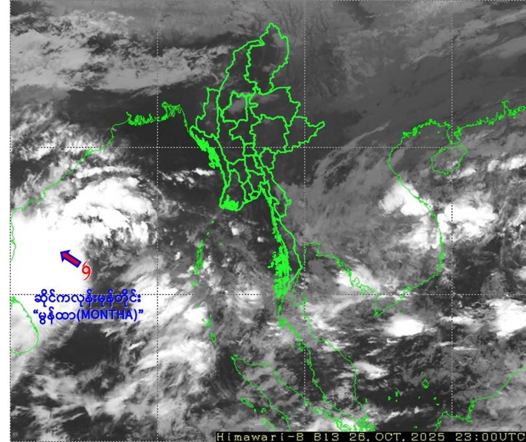 ယနေ့မြန်မာစံတော်ချိန် နံနက် ၅ နာရီခွဲအချိန် တိုင်းထွာချက်များအရ ဘင်္ဂလား ပင်လယ်အော်အရှေ့တောင်ပိုင်းတွင် ဖြစ်ပေါ်နေသော အားကောင်းသောမုန်တိုင်းငယ် (Deep Depression) သည် အနောက်-အနောက်မြောက်ဘက်သို့ ရွေ့လျားခဲ့ပြီး ပိုမိုအားကောင်းလာကာ ဘင်္ဂလားပင်လယ်အော်အနောက်တောင်ပိုင်းတွင် ဆိုင်ကလုန်း မုန်တိုင်း“မွန်ထာ”(MONTHA)အဖြစ်သို့ ရောက်ရှိခဲ့သည်။