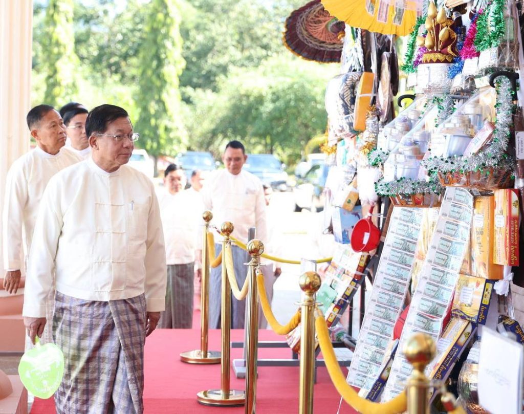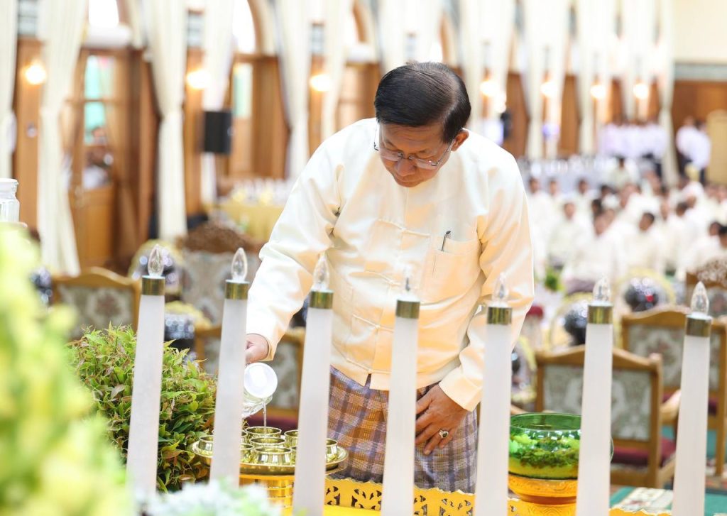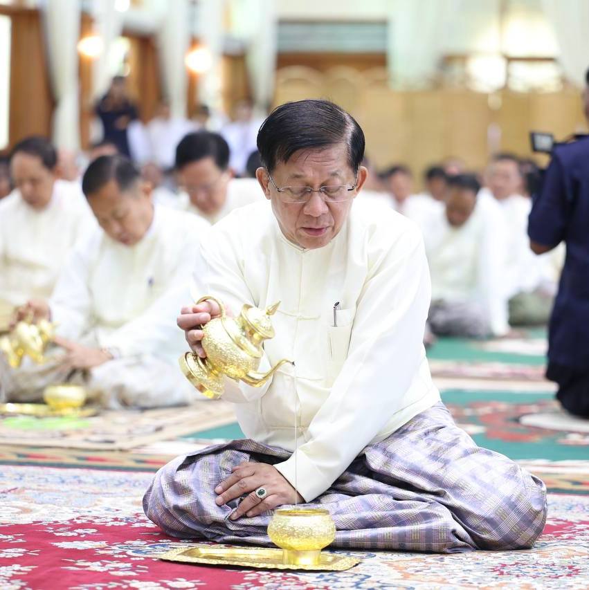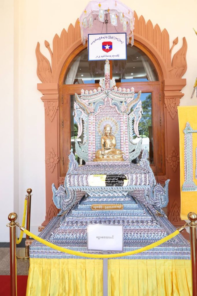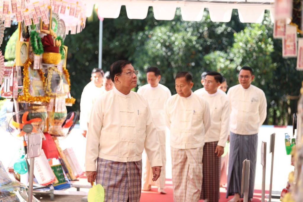 တပ်မတော်ကာကွယ်ရေးဦးစီးချုပ်နှင့်ဇနီး၊ ဧည့်ပရိသတ်များသည် ဘုန်းတော်ကြီးကျောင်း အသီးသီးသို့ လှူဒါန်းရန် ခင်းကျင်းပြင်ဆင်ထားသည့် ကထိန်လျာသင်္ကန်း၊ လှူဖွယ်ပစ္စည်းများနှင့် ပဒေသာပင်များအား လှည့်လည်ကြည့်ရှုကြပြီးနောက် တပ်မတော်ကာကွယ်ရေးဦးစီးချုပ်သည် အနော်ရထာခန်းမအတွင်းရှိ ဗုဒ္ဓရုပ်ပွားတော်မြတ်အား ဖူးမြော်ကြည်ညို၍ မြသပိတ်ဆွမ်းတော်နှင့် ပန်း၊ သောက်တော်ရေချမ်း၊ ဆီမီး၊ သစ်သီးတို့ကို ဆက်ကပ်လှူဒါန်းသည်။