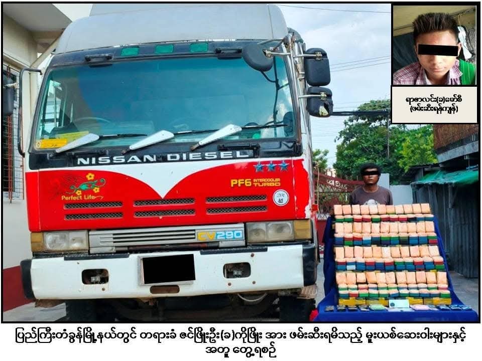 သတင်းကွင်းဆက်အရ အောက်တိုဘာလ ၂၄ ရက်နေ့ မွန်းလွဲ ၂ နာရီခွဲအချိန် ပြည်ကြီးတံခွန်မြို့နယ်၊ (ည)ရပ်ကွက်၊ ၅၅ x ၅၆ လမ်းကြားနှင့် ၁၄၁ x ၁၄၂ လမ်းကြားတွင် ဇင်ဖြိုးဦး(ခ)ကိုဖြိုး အား NISSAN ၁၂ ဘီးမော်တော်ယာဉ်ပေါ်မှ ဘိန်းဖြူ ၆ ဒသမ ၁၇ ကီလို၊ စိတ်ပြောင်းဆေးဝါးများဖြစ်သည့် HAPPY WATER ၇၇၅ ဂရမ်တို့နှင့်အတူ ဖမ်းဆီးရမိခဲ့သဖြင့် စုစုပေါင်း ဘိန်းဖြူ ၆ ဒသမ ၁၇ ကီလို (၎င်းဒေသတန်ဖိုးငွေကျပ် ၁,၅၄၂ ဒသမ ၅ သိန်း)၊ ဘိန်းဆီခဲ ၇၄ ကီလို(၎င်းဒေသတန်ဖိုးငွေကျပ်သိန်း ၁,၄၈၀)၊ စိတ်ပြောင်းဆေးဝါးများဖြစ်သည့် HAPPY WATER ၉ ဒသမ ၇၇၅ ကီလို(၎င်းဒေသတန်ဖိုးငွေကျပ်သိန်း ၆,၃၃၀)၊ အက်တက်စီဆေးပြား ၁,၀၀၀ ပြား(၎င်းဒေသတန်ဖိုးငွေကျပ်သိန်း ၄၅၀)၊ ကက်တမင်း ၁၁ ဒသမ ၂ ကီလို(၎င်းဒေသတန်ဖိုးငွေကျပ်သိန်း ၁,၁၂၀)၊ စိတ်ကြွရူးသွပ်ဆေးပြား ၁ ဒသမ ၁၄ သိန်း(၎င်းဒေသတန်ဖိုးငွေကျပ်သိန်း ၅၇၀)၊ (စုစုပေါင်းတန်ဖိုးငွေကျပ် ၁ ဒသမ ၁၄၉၂၅ ဘီလျံ)ဖမ်းဆီးရမိခဲ့ကြောင်း၊ စစ်ဆေးပေါ်ပေါက်ချက်များအရ ဖမ်းဆီးရမိ မော်တော်ယာဉ် ၂ စီး၏ပိုင်ရှင် ရဲစိုးဦး(ခ)ရဲနိုင်(ဖမ်းဆီးရန်ကျန်) သည် မိုင်းရယ်မြို့မှ မူးယစ်ဆေးဝါးနှင့် စိတ်ပြောင်းဆေးဝါးများအား ကရင်ပြည်နယ်၊ ဘားအံမြို့သို့လည်းကောင်း၊ မန္တလေးမြို့သို့လည်းကောင်း၊ ဘုတလင်မြို့နယ်နေ ရာဇာလင်း(ခ)မော်စီ(ဖမ်းဆီးရန်ကျန်)နှင့် ရှိုင်းဗိုလ်(ခ)ငမော့ တို့အား သယ်ဆောင်ခိုင်းခြင်းဖြစ်ကြောင်းသိရှိရသဖြင့် ၎င်းတို့အား မူးယစ်ဆေးဝါးနှင့် စိတ်ကိုပြောင်းလဲစေသောဆေးဝါးများဆိုင်ရာဥပဒေအရ အရေးယူထားရှိပြီးကွင်းဆက်ပြစ်မှုကျူးလွန်သူများအား ဆက်လက်ဖော်ထုတ်လျက်ရှိကြောင်း သိရသည်။