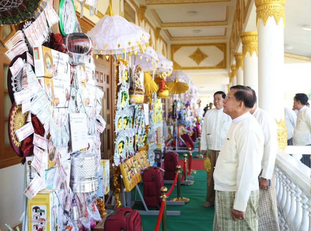 ပြည်ထောင်စုနယ်မြေ နေပြည်တော်၊ ဒက္ခိဏသီရိမြို့နယ်၊ မာရဝိဇယဗုဒ္ဓဥယျာဉ် ဝတ္ထုကံတော်အတွင်းရှိ မာရဝိဇယကျောင်းတော် ၂၀၂၅ ခုနှစ် ကထိန်သင်္ကန်းဆက်ကပ် လှူဒါန်းပွဲအခမ်းအနားကို ယနေ့ နံနက်ပိုင်းတွင် အဆိုပါ မာရဝိဇယကျောင်းတော်၌ ကျင်းပပြုလုပ်ရာ ပြည်ထောင်စုသမ္မတမြန်မာ နိုင်ငံတော်ယာယီသမ္မတ နိုင်ငံတော်လုံခြုံရေးနှင့် အေးချမ်းသာယာရေးကော်မရှင် ဥက္ကဋ္ဌ ဗိုလ်ချုပ်မှူးကြီးမင်းအောင်လှိုင်နှင့် ဇနီး ဒေါ်ကြူကြူလှတို့ တက်ရောက်၍ ကထိန်လျာသင်္ကန်းနှင့် လှူဖွယ်ပစ္စည်းများ ဆက်ကပ်လှူဒါန်းသည်။