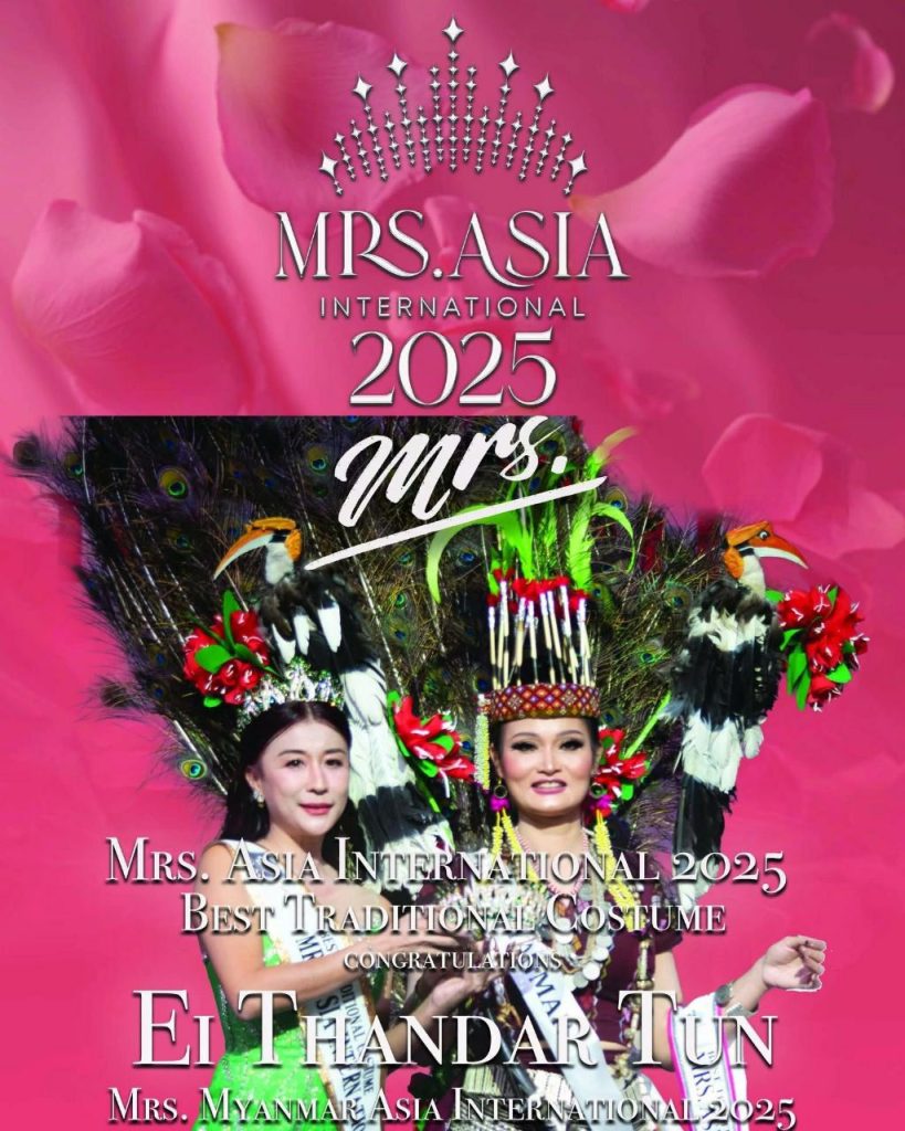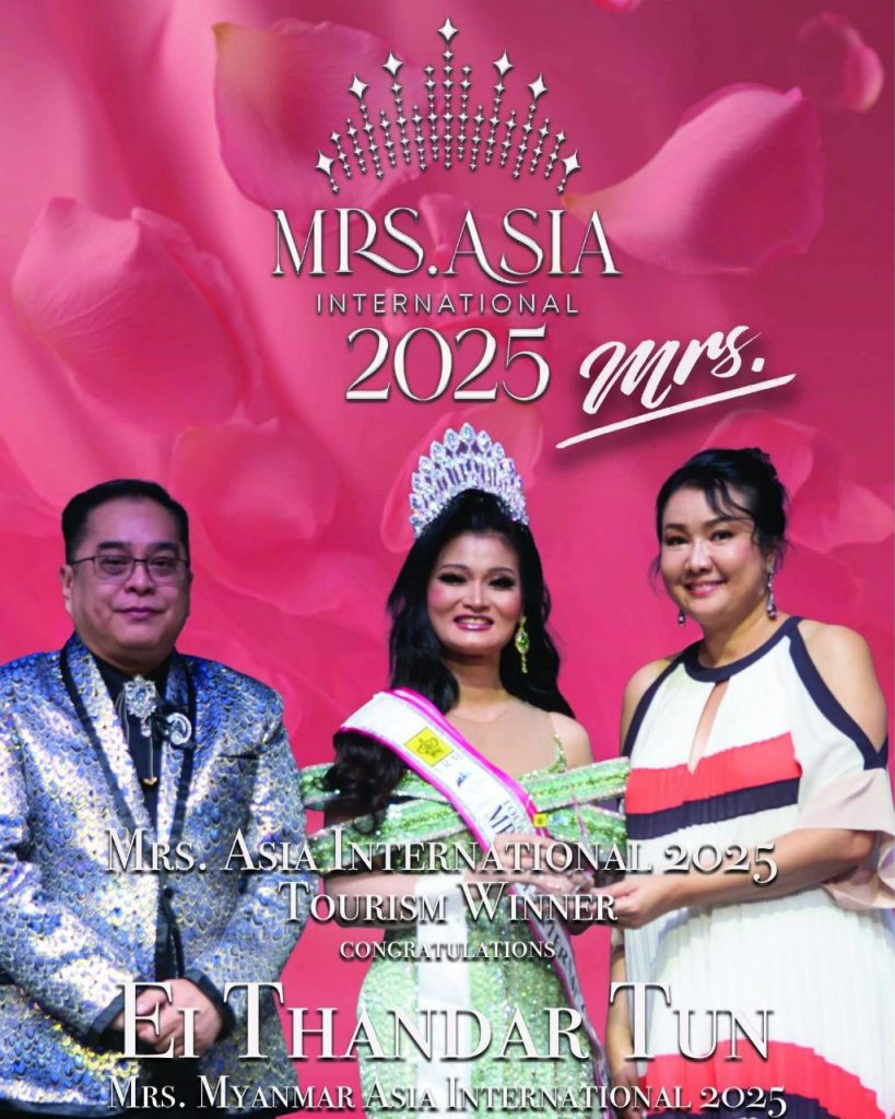 နောက် ပေါင်းသင်းဆက်ဆံရေးနဲ့ပတ်သက်ပြီးတော့ ဒီဆုတွေလည်း ရတဲ့အတွက် ပင်ပန်းရကျိုးနပ်တယ်လို့ပြောလို့ရပါတယ်။ အားလုံးဝိုင်းဝန်းရံပေးကြတဲ့ တစ်ယောက်ဆီတိုင်းကိုလည်း ကျေဇူး အထူးတင်ပါတယ်”လို့ Mrs. Asia International 2025 Tourism Crown ဆုရှင် အိသန္တာထွန်းက MT Entertainment ကိုပြောပါတယ်။