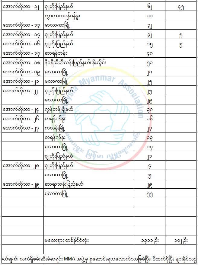 လက်ရှိ ဖမ်းဆီးခံစာရင်းမှာလည်း MMA အဖွဲ့၏ စုဆောင်းမိသလောက်သာဖြစ်ပြီး ထို့ထက်လည်းပိုမို များပြားနိုင်သည်ဟုလည်း သိရသည်။
