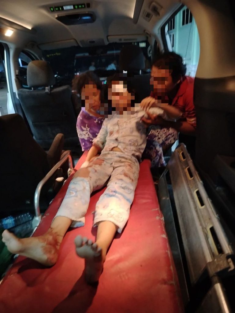 ယာဉ်တိုက်မိတဲ့ဖြစ်စဉ်ကြောင့် အသက် ၁၁ နှစ်အရွယ် မိန်းကလေးငယ်မှာ ခြေထောက်၊ လက်နဲ့ ဘယ်ဘက်မျက်လုံး ထိခိုက်ဒဏ်ရာတွေ ပြင်းထန်စွာရရှိထားကြောင်းသတင်းအရ မိုးစေတနာ ပရဟိတအသင်း ပျဥ်းမနားရုံးက လူနာတင်ယာဥ်နဲ့ ပျဥ်းမနားမြို့ ကုတင် ၂၀၀ ဆံ့ ပြည်သူ့ဆေးရုံကြီးမှ နေပြည်တော် ကုတင် ၁၀၀၀ဆံ့ ပြည်သူ့ဆေးရုံကြီး အရေးပေါ်ဌာနဆီ ဆေးကုသမှုခံယူနိုင်ဖို့ ပို့ဆောင်ကူညီပေးခဲ့တယ်လို့ သိရပါတယ်။