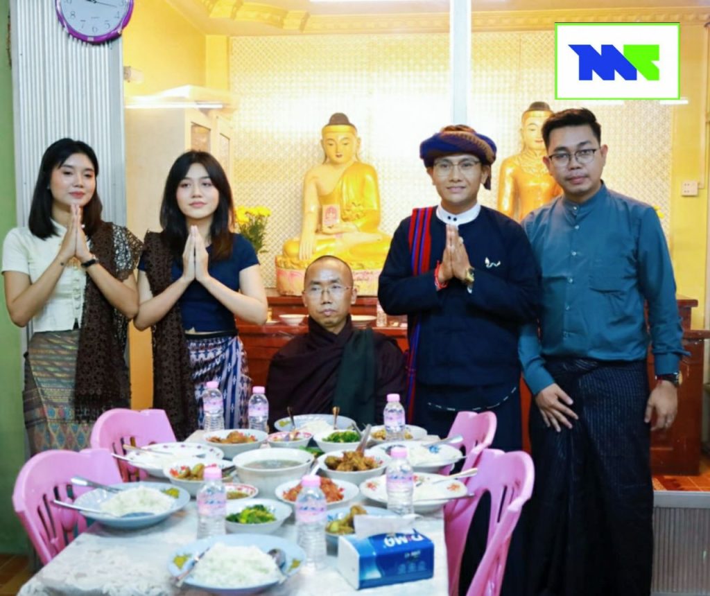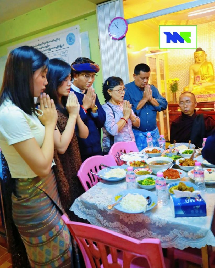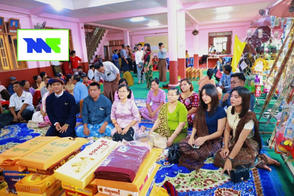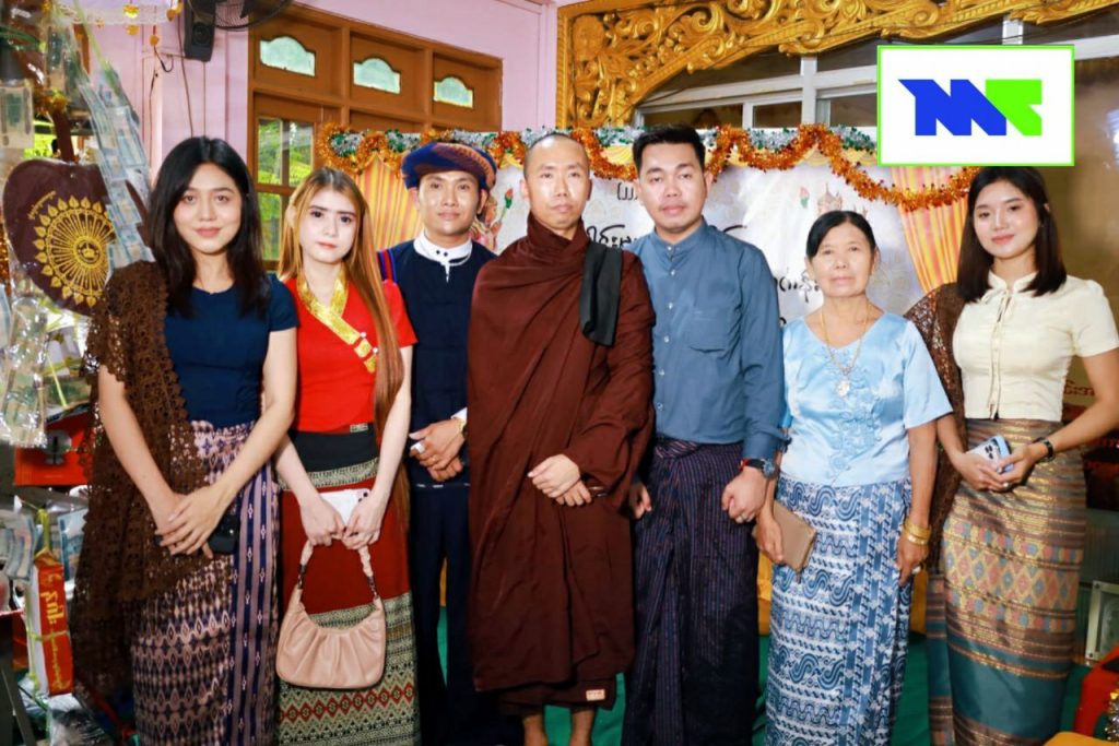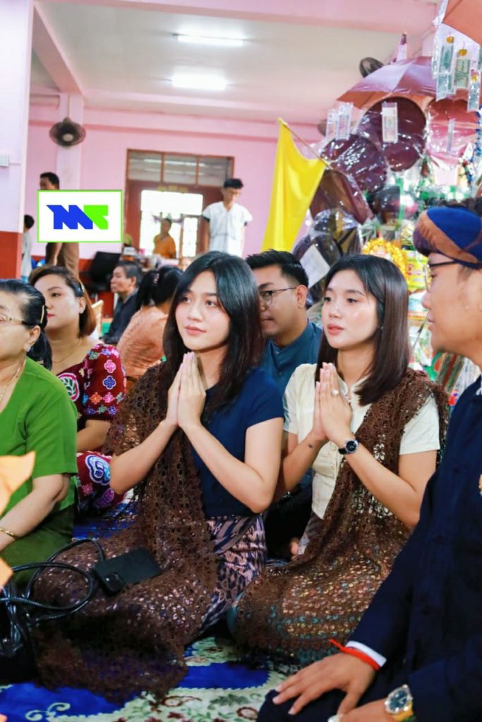အဆိုပါ ကျောင်းတိုက်ရှိ သာသနဓဇဓမ္မာစရိယ ဆရာတော် ဘဒ္ဒန္တကောလိန္ဒာလင်္ကာရကို ကထိန်သင်္ကန်းတွေ ဆက်ကပ်ခဲ့ပြီး ရေစက်သွန်းချတရားတော်နာယူခဲ့ကြပါတယ်။ ဒီအလှူအခမ်းအနားကိုတော့ အဆိုတော် နိုင်းကေ၊ လင်းရန်လင်း၊ သရုပ်ဆောင်တွေဖြစ်တဲ့ ခေဒြာမြင့်မိုရ်၊ ပန်းဝတ်မှုန်၊ ပိုးကိစတဲ့သူတွေ လာရောက်ကာ ဆရာတော်ထံ ဆွမ်းကပ်လှူဒါန်းခဲ့ပါတယ်။