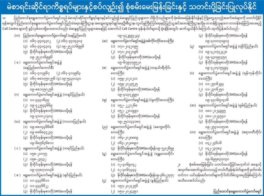 ၂၀၂၅ ခုနှစ် ပါတီစုံဒီမိုကရေစီ အထွေထွေရွေးကောက်ပွဲ ကျင်းပမှုကိုပျက်ပြားစေရန် ရည်ရွယ်၍ လူမှုကွန်ရက်စာမျက်နှာများ၊ အများပြည်သူဆိုင်ရာ နေရာများ၌ ဟောပြောခြင်း၊ ပြောဆိုခြင်း၊ စည်းရုံးလှုံ့ဆော်ခြင်း၊ ဆန္ဒပြခြင်း၊ စာရေးသားခြင်း၊ ရုပ်ပုံပိုစတာများ ချိတ်ဆွဲခြင်း စသည်တို့ဖြင့် နှောင့်ယှက်ဟန့်တားဖျက်ဆီးခြင်းများ၊ ရွေးကောက်ပွဲဆိုင်ရာ လုပ်ငန်းစဉ်များအား ထိခိုက်ပျက်စီးအောင် နှောင့်ယှက်ဟန့်တားဖျက်ဆီးခြင်း ပြုလုပ်သူများအား လုံခြုံရေးတပ်ဖွဲ့ဝင်များက ပါတီစုံဒီမိုကရေစီအထွေထွေ ရွေးကောက်ပွဲများကို နှောင့်ယှက်ဟန့်တားခြင်းမှ ကာကွယ်ပေးရေးဥပဒေနှင့်အညီ အမှုရေးဖွင့်စုံစမ်းခြင်းများ ဆောင်ရွက်လျက်ရှိရာ ယခုလည်း Facebook ပေါ် ပို့စ်တင်ခြင်း၊ လွှတ်တော်ကိုယ်စားလှယ်လောင်း၏ ဗီနိုင်းကို ဆုတ်ဖြဲခြင်းနှင့် PDF နှင့် ချိတ်ဆက်ပြီး ရွေးကောက်ပွဲဖျက်ရန် ကြံဆောင်သူများကို ရွေးကောက်ပွဲကာကွယ်ပေးရေးဥပဒေနှင့် အရေးယူထားသည်ဟု ပြည်ထဲရေးဝန်ကြီးဌာနက သတင်းထုတ်ပြန်သည်။