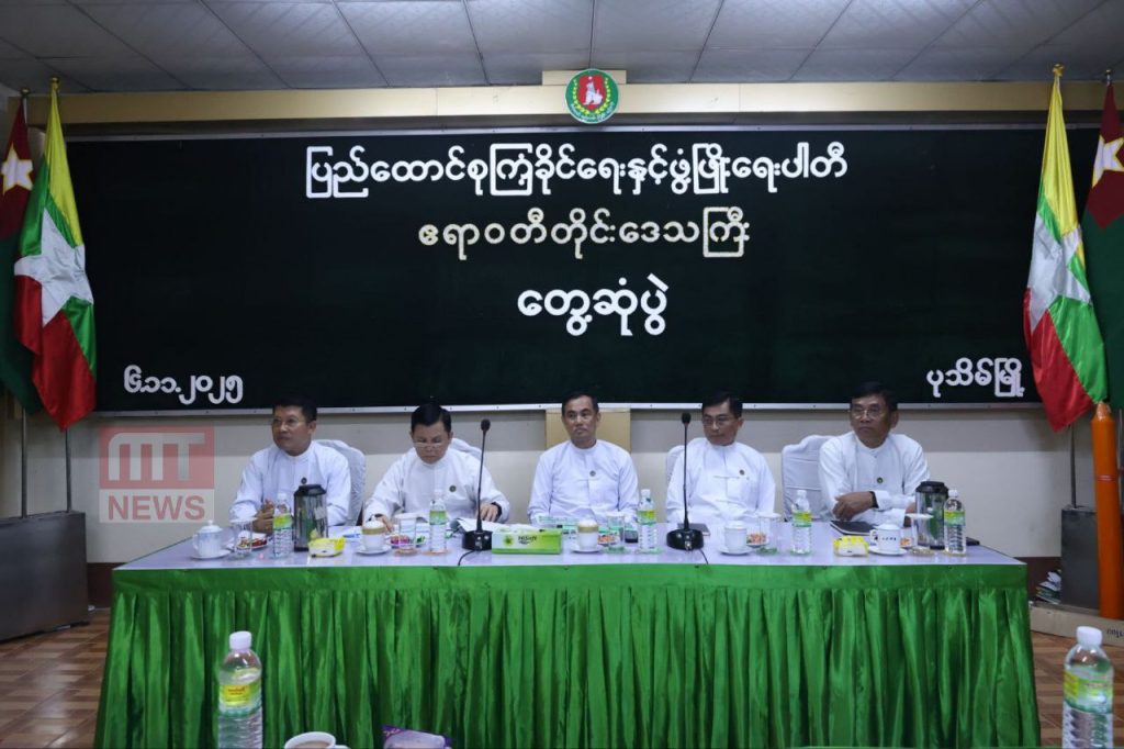 ပြည်ထောင်စုကြံ့ခိုင်ရေးနှင့် ဖွံ့ဖြိုးရေးပါတီ၏ ဧရာ၀တီတိုင်းဒေသကြီးရှိ ကျုံပျော်ခရိုင်၊ ပုသိမ်ခရိုင်၊ မြောင်းမြခရိုင်၊ လပွတ္တာခရိုင်အပါအဝင် အခြားခရိုင်တို့မှ လွှတ်တော်ကိုယ်စားလှယ်လောင်းများနှင့် ပါတီဗဟိုအတွင်းရေးမှူးတို့ တွေ့ဆုံပွဲကို ပုသိမ်မြို့နယ်ရှိ ပြည်ထောင်စုကြံ့ခိုင်ရေးနှင့်ဖွံ့ဖြိုးရေးပါတီတိုင်းရုံးတွင် နိုဝင်ဘာ ၆ ရက် ညနေပိုင်းက ပြုလုပ်ခဲ့သည်။