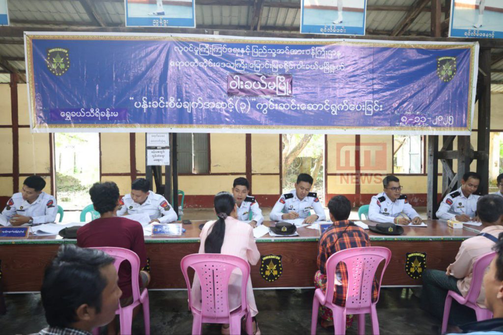 ပြည်ထောင်စုဝန်ကြီးသည် ဝါးခယ်မမြို့နယ်ရှိ ရွှေခယ်သီရိခန်းမတွင် မြို့နယ်အထွေထွေအုပ်ချုပ်ရေးဦးစီးဌာန၊ မြို့နယ်ရွေးကောက်ပွဲ ကော်မရှင်အဖွဲ့ခွဲ၊ လူဝင်မှုကြီးကြပ်ရေးနှင့် ပြည်သူ့အင်အားဝန်ကြီးဌာန မြို့နယ်ဦးစီးမှူးရုံးတို့မှ ဝန်ထမ်းများစုပေါင်း၍ မဲစာရင်းမှန်ကန်ရေးအတွက် မြေပြင်လူဦးရေတိုက်ဆိုင် စိစစ်ဆောင်ရွက်နေမှုအခြေအနေများနှင့် အိမ်ထောင်စု လူဦးရေစာရင်းနှင့် နိုင်ငံသားစိစစ်ရေး ကတ်ပြား ပျက်စီး/ ပျောက်ဆုံးသွားသည့် ဒေသခံပြည်သူများနှင့် နိုင်ငံသား စိစစ်ရေးကတ်ပြားမရရှိသေးသည့် ပြည်သူများအား ပန်းခင်းစီမံချက် အဆင့်(၃)ဖြင့် ဆောင်ရွက်ပေးနေမှုကို လည်းကောင်း၊ နိုင်ငံသားကတ်ပြားရရှိ ပြီးသူများအား e-ID စနစ်ဖြင့် Biographic/Biometric ကောက်ယူကာ Unique ID နံပါတ်တစ်ပါတည်းဆောင်ရွက် ထုတ်ပေးနေမှုများကိုလှည့်လည်ကြည့်ရှုအားပေးကာ တာဝန်ရှိသူများအား လုပ်ငန်းလိုအပ်ချက်များ ညှိနှိုင်းဆောင်ရွက်ပေးခဲ့ကြောင်း သိရသည်။