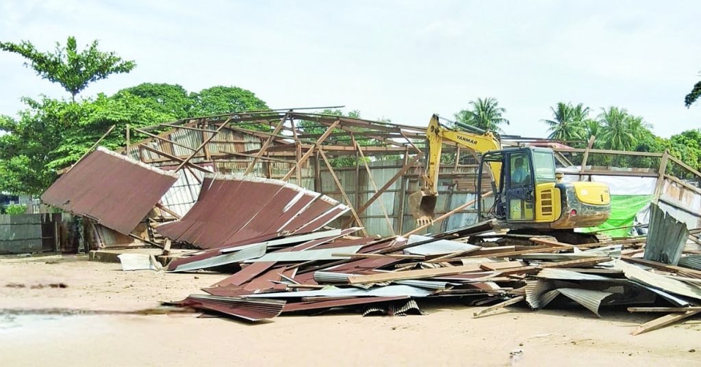 ထိုသို့ ဖျက်ဆီးရှင်းလင်းခြင်းလုပ်ငန်းများ ဆောင်ရွက်ရာတွင် လုံခြုံရေးအဖွဲ့နှင့် ဖယ်ရှားရှင်းလင်းရေးအဖွဲ့ဝင်များသည် ယမန်နေ့နံနက်ပိုင်းတွင် စက်၊ ယာဉ်၊ ယန္တရားများနှင့်အတူ မြဝတီမြို့ အမှတ် (၅) ရပ်ကွက်ရှိ ၃၅ ဂိတ် ဒေသအခေါ် အောင်ပါဝါဂိတ်-၂ ကို သွားရောက်စစ်ဆေးပြီး အလျားပေ ၁၂၀၊ အနံပေ ၆၀၊ အမြင့် ၂၅ ပေရှိ သံဖရိန်၊ အုတ်တက်၊ သွပ်မိုးသွပ်ကာ ပစ္စည်းသိုလှောင်ရုံအား ဖယ်ရှားရှင်းလင်းခြင်းလုပ်ငန်းကို ဆောင်ရွက်ခဲ့ကြသည်။