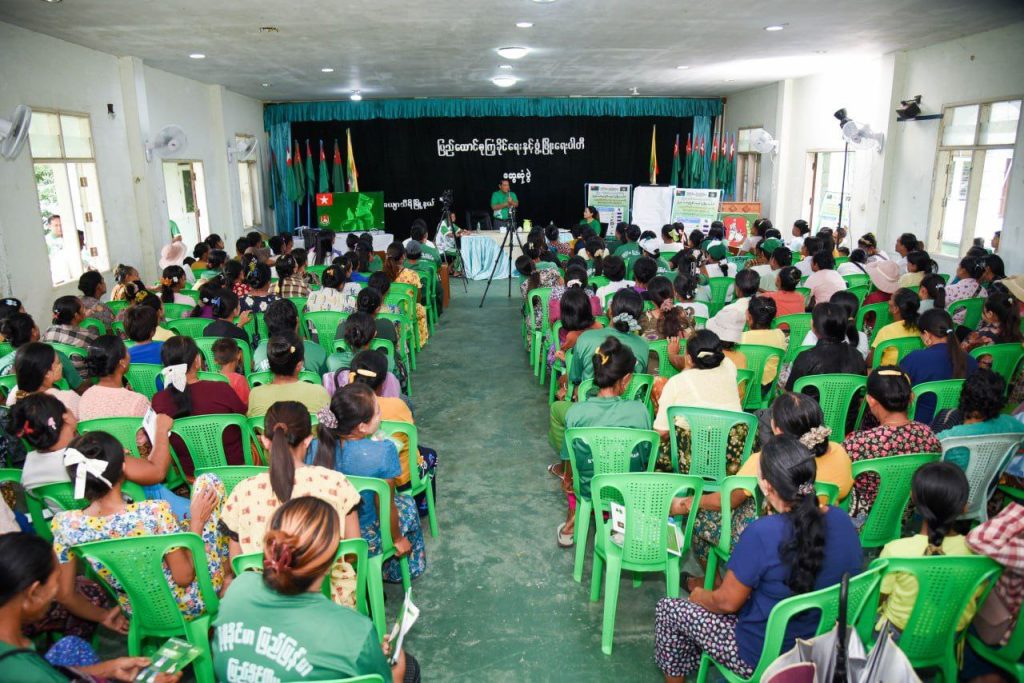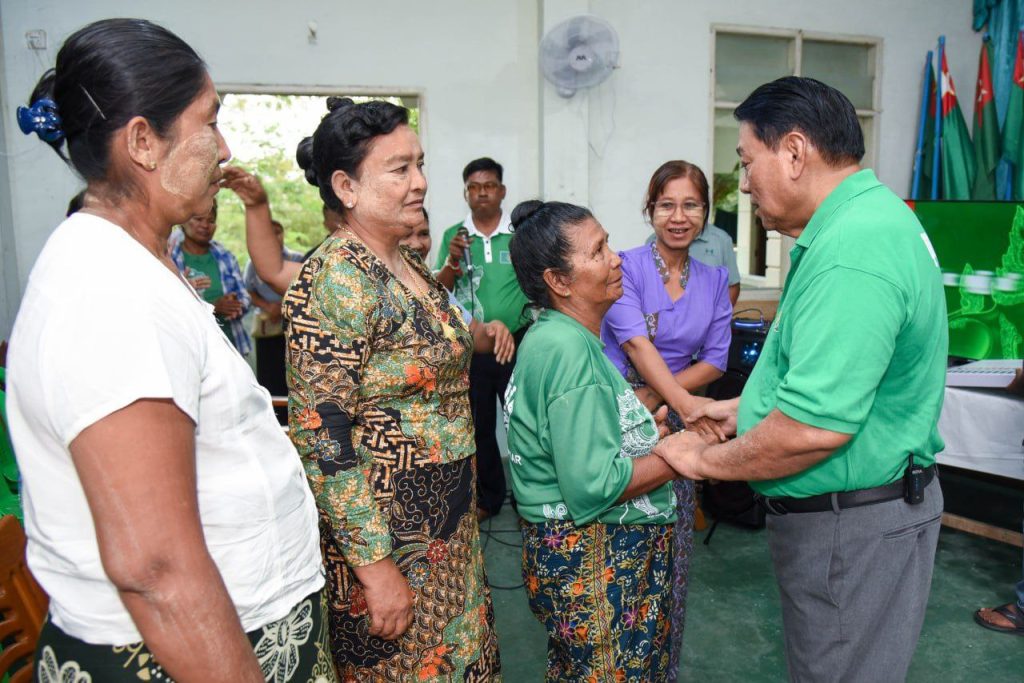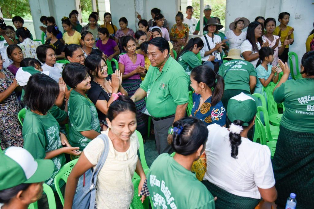 “ကျွန်တော်က စစ်သားဗျာ။ စစ်သားဆိုတော့ ခြေလျင်တပ်မှာနေရတယ်။ စစ်ဆင်ရေးတွေ သွားရတယ်။ အန္တရာယ်တွေများတာပေါ့။ အဲဒီတော့ ကျွန်တော်တို့ အန္တရာယ်ကင်းအောင်ဘာလုပ်လဲဆိုတော့ စစ်ထွက်တဲ့အခါကြတော့ အမေ့ရဲ့ထဘီစကို ချည်ရတယ်။ ကြားဖူးမှာပေါ့နော်။ အမေ့ထဘီစကို လက်မှာချည်ပြီးတော့ သွားရတယ်။ ကျွန်တော်တို့ကတော့ အမေက ကပ်ပါလာတယ်။ အမေ့ထဘီစကို ချည်ထားရင် အကာအကွယ်ရတယ်။ အန္တရာယ်ကင်းတယ်လို့ အဲဒီလိုကျွန်တော်တို့ ယုံကြည်ခဲ့တယ်။ မိခင်တစ်ယောက်က ကျွန်တော်တို့မြန်မာ့လူ့အဖွဲ့အစည်းမှာ အင်မတန်မွန်မြတ်တယ်။ အမေဆိုတာလည်း အမျိုးသမီးပဲ။ အမျိုးသမီးထုကြီးနဲ့ တွေ့ရတာ ရည်ရွယ်ချက်က သုံးခုရှိတယ်နော်။ နံပါတ်တစ်က ကျွန်တော်တို့ မြန်မာနိုင်ငံမှာ အမျိုးသမီးဦးရေက ပိုများတယ်။ လူဦးရေက ထက်ဝက်ကျော်တယ်။ ရှိတဲ့အမျိုးသမီးလူဦးရေ၊ အမျိုးသမီးထုကြီးရဲ့အားကို ကျွန်တော်တို့က လေးစားတာပါ။ ဒါဟာ ကျွန်တော်တို့နိုင်ငံအတွက်ပဲဖြစ်ဖြစ် အဖွဲ့အစည်းအတွက်ပဲဖြစ်ဖြစ် အင်မတန်ကြီးမားတဲ့ အင်အားစုကြီးဖြစ်တယ်။ ဒီအင်အားစုကြီးကို ကျွန်တော်တို့က မေ့ထားလို့မရဘူး’’ ဟု ပြည်ခိုင်ဖြိုးပါတီ ဥက္ကဋ္ဌ ဦးခင်ရီက ပြောကြားသည်။