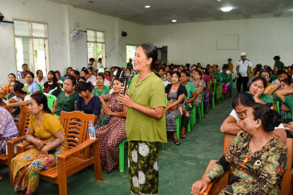 ထိုနောက် တွေ့ဆုံပွဲလာရောက်သည့် ရပ်ကွက်၊ကျေးရွာအုပ်စုအသီးသီးမှ အမျိုးသမီးများက မိမိတို့ရပ်ရွာအတွင်းရှိ အမျိုးသမီးများ ဘဝလုံခြုံမှုရှိစေရေး၊ အမျိုးသမီးရေးရာအဖွဲများ ဖွဲစည်းပေးရေး၊ စီးပွားရေး၊ ကျန်းမာရေးနှင့် ဒေသလိုအပ်ချက်များ တင်ပြမေးမြန်းခဲ့ကြကြောင်း သိရသည်။