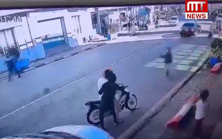 အဲဒီနောက် လူသတ်ဓားပြတိုက်သူနှစ်ယောက်က သူတို့စီးလာတဲ့ဆိုင်ကယ်နဲ့ ပြန်ထွက်ပြေးဖို့လုပ်နေချိန် ကြက်ဥတွေပါတဲ့ကတ်ကို ကိုင်ထားသူ ပိန်ပိန်သေးသေးအမျိုးသမီးကပြေးလာပြီး ကြက်ဥကတ်နဲ့ ပစ်ပေါက်ချိန် အနောက်က အင်္ကျီအမည်းနဲ့ အမျိုးသားက ထွက်ပြေးသွားပေမဲ့ ဆိုင်ထဲက ထွက်လာတဲ့ အမျိုးသမီးက လူသတ်သမားဓားပြက ကြက်ဥကတ်နဲ့ပေါက်သူအမျိုးသမီးကို ဝင်တိုက်ဖို့ကြံချိန် ဆိုင်ကယ်ကို ဆွဲလိုက်တာ တွေ့ရသလို ကြက်ဥကတ်နဲ့ ပေါက်တဲ့ အမျိုးသမီးကလည်း ရှောင်လိုက်နိုင်ပါတယ်။ အဲဒီအချိန် တစ်ဖက်က ပုဂ္ဂလိကဘဏ်လုံခြုံရေးဝန်ထမ်းက တုတ်နဲ့ လိုက်ရိုက်သလို အနားမှာရှိတဲ့ အမျိုးသားနဲ့ အမျိုးသမီး ၈ ဦးက ဝိုင်းဝန်းရိုက်နှက် ဖမ်းဆီးရာမှာ သေနတ်နဲ့ပစ်ခတ်သူ လူသတ်သမား အောင်မျိုးနိုင် (၃၀)နှစ် ဆိုသူကို ဖမ်းဆီးရမိထားတယ်လို့ သိရပြီး ဒီဖြစ်စဥ်ကို သက်ဆိုင်ရာကလည်း အတည်ပြုထုတ်ပြန်ထားကာ ထွက်ပြေးလွတ်မြောက်သူကို ဖမ်းဆီးနိုင်ရေး ကြိုးပမ်းနေတယ်လို့ သိရပါတယ်။