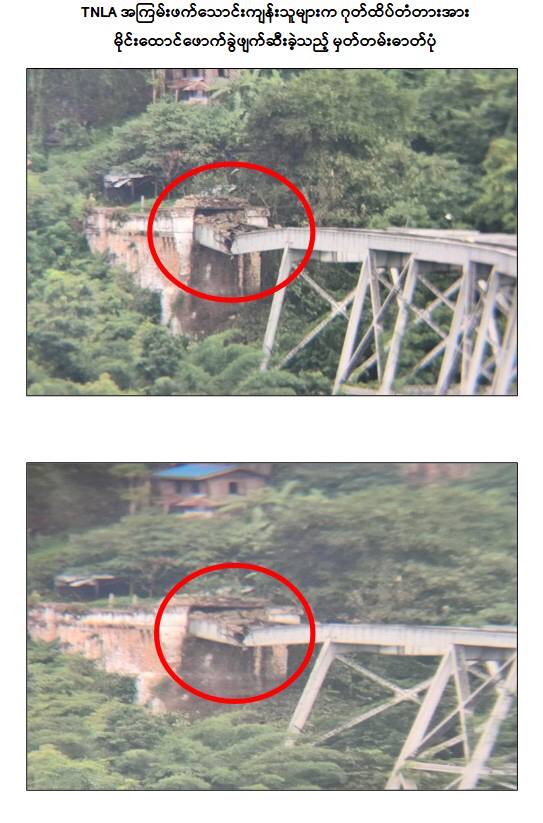 ၂၀၂၅ ခုနှစ် ဩဂုတ် ၂၄ ရက်တွင် TNLA သောင်းကျန်းသူများ၏ မိုင်းထောင်ဖောက်ခွဲ ဖျက်ဆီးခြင်းခံခဲ့ရသည့် ရှမ်းပြည်နယ်(မြောက်ပိုင်း) နောင်ချိုမြို့နယ်ရှိ ရှေးဟောင်းအမွေအနှစ် ဂုတ်ထိပ်တံတားကြီး၏ ပျက်စီးသွားသော အစိတ်အပိုင်းများကို မြန်မာ့မီးရထား အင်ဂျင်နီယာများက ရှေးမူရင်းလက်ရာ ဒီဇိုင်းအတိုင်း အောင်မြင်စွာ ပြန်လည်ပြင်ဆင်ပြီးစီးခဲ့ပြီးဖြစ်သဖြင့် ပို့ဆောင်ရေးနှင့် ဆက်သွယ်ရေး ဝန်ကြီးဌာန၊ ပြည်ထောင်စုဝန်ကြီး ဦးမြထွန်းဦး၊ ဒုတိယဝန်ကြီး ဦးအောင်မြိုင်နှင့် မြန်မာ့မီးရထားမှ တာဝန်ရှိသူများ ပါဝင်သောအဖွဲ့သည် ယမန်နေ့တွင် ဂုတ်ထိပ်တံတားကြီးပေါ်၌ ရထားစမ်းသပ် မောင်းနှင်နေခြင်းအား သွားရောက်စစ်ဆေးသည်။