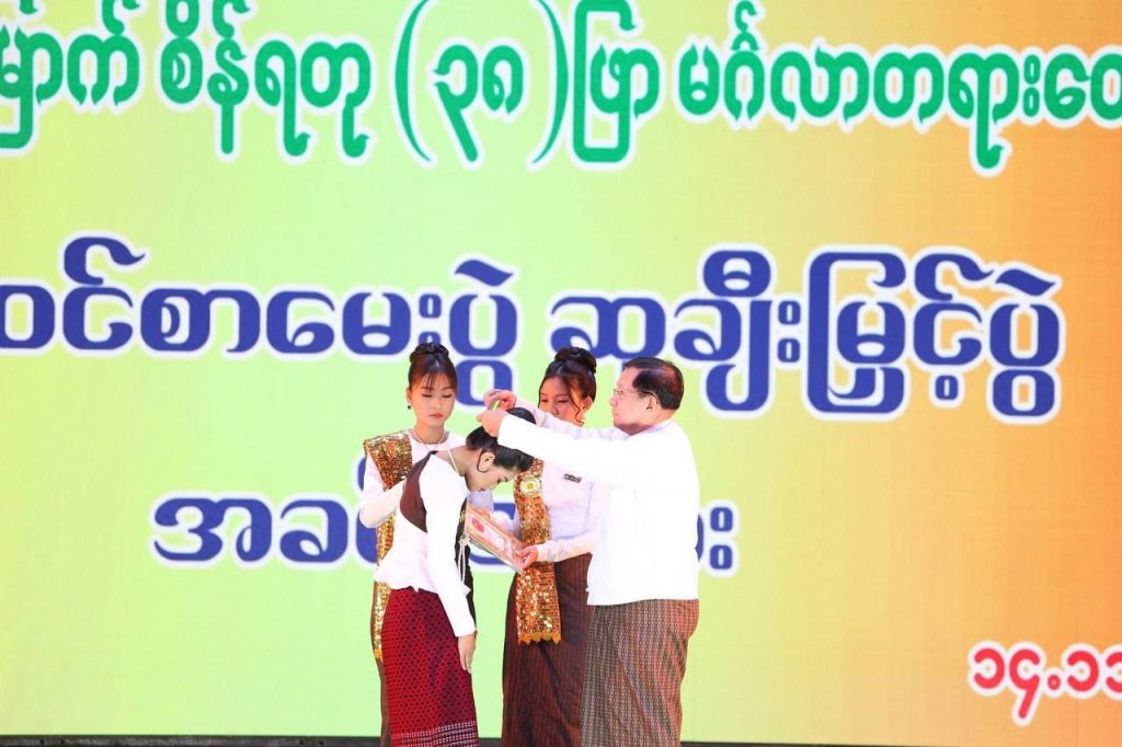 ယခုနှစ် (၇၅) ကြိမ်မြောက် (၃၈) ဖြာမင်္ဂလာတရားတော်နှင့် ဗုဒ္ဓဝင်စာမေးပွဲများကို ကျင်းပရာတွင် ယခင်နှစ်များနှင့်မတူ ထူးခြားသည်မှာ မြန်မာဘာသာနှင့်သာမကပဲ တိုင်းရင်းသား ဘာသာများဖြစ်သည့် မွန်၊ ပအိုဝ့် ဘာသာများနှင့်ပါ ဖြေဆိုနိုင်ခဲ့သည်ကို ဝမ်းမြောက်ဂုဏ်ယူ ဖွယ်ရာတွေ့ရှိရကြောင်း၊ နောင်လာမည့် နှစ်များတွင်လည်း ယခုတိုင်းရင်းသား ဘာသာစကားများအပြင် အခြားတိုင်းရင်းသားဘာသာစကားများနှင့်ပါ ဖြေဆိုနိုင်ကြရေးအတွက် မိမိအနေဖြင့် တိုက်တွန်းပြောကြားလိုကြောင်း ယာယီသမ္မတက ပြောကြားသည်။
