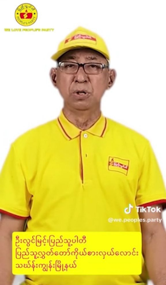 ဦးကိုကိုကြီး ဦးဆောင်သည့် ပြည်သူ့ပါတီ(PP)မှ ကိုယ်စားလှယ်လောင်း ဦးလွင်မြင့်က ၎င်း၏သားသည် ၂၀၂၁ ခုနှစ် အကြမ်းဖက်လှုပ်ရှားမှုတွင် ပါဝင်ခဲ့ကြောင်းနှင့် မကြာသေးမီကမှ ထောင်မှ လွတ်မြောက်ခဲ့ကြောင်းကို “၂၀၂၁ အရေးတော်ပုံ”ဟု သုံးနှုန်းခြင်းနှင့် မဲဆွယ်လက်ကမ်းစာတွင် ၂၀၂၁ နွေဦးတော်လှန်ရေးဟု သုံးနှုန်းခြင်း၊ ထောင်တွင်းနိုင်ငံရေးအကျဥ်းသားများအတွက် ငွေကြေးနှင့်ထောင်ဝင်စာ တစ်တပ်တအား ပါဝင်ကူညီခဲ့ကြောင်း စသဖြင့် ပြောဆို၍ မဲဆွယ်စည်းရုံးသည့် ရုပ်သံကို ထုတ်လွှင့်ပြောဆိုထားကြောင်း သိရသည်။