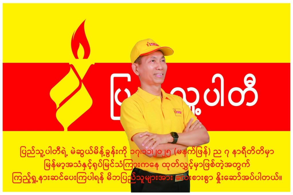 ‘‘ယခုလို သာမန်မဟုတ်တဲ့ အခြေအနေမျိုးမှာ ကျင်းပမဲ့ ရွေးကောက်ပွဲဟာ သာမန်ရွေးကောက်ပွဲတွေထက် အရေးကြီးပါတယ်။ လက်ရှိပဋိပက္ခတွေကို ဖြေရှင်းနိုင်ဖို့၊ စားဝတ်နေရေးပြဿနာတွေကို သက်သာပြေလည်နိုင်စေဖို့၊ လာမယ့် ငါးနှစ်တာကာလအတွက် နိုင်ငံတော်ကို ရွေးချယ်ကြရမှာဖြစ်ပါတယ်။ ပြည်သူအားလုံးကိုယ်စား ပြောရေးဆိုခွင့်ရရှိဖို့ ပြည်သူတွေရဲ့ဆန္ဒမဲနဲ့ ပြည်သူတွေကို အခြေပြုတဲ့ နိုင်ငံတော်သစ်ကို တည်ဆောက်နိုင်ဖို့အတွက် အဝါရောင်နောက်ခံနဲ့ ပြည်သူ့ပါတီကို မဲပေးထောက်ခံကြဖို့ လေးစားစွာပြန်ကြားအပ်ပါတယ်ခင်ဗျာ” ဟု ပြည်သူ့ပါတီ ဥက္ကဋ္ဌ ဦးကိုကိုကြီးက ဟောပြောခဲ့သည်။