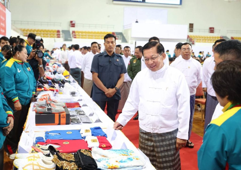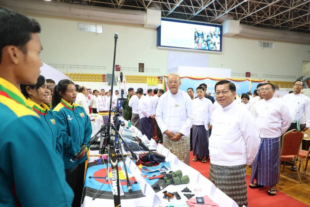 အရှေ့တောင်အာရှအားကစားပြိုင်ပွဲ သွားရောက်ယှဉ်ပြိုင်မည့် မြန်မာအားကစားအဖွဲ့အနေဖြင့် ယခင်နှစ်များထက် ဆုတံဆိပ်ပိုမိုရရှိအောင် စွမ်းဆောင်ပေးကြရန် မြန်မာနိုင်ငံတော် ယာယီသမ္မတ နိုင်ငံတာ်လုံခြုံရေးနှင့် အေးချမ်းသာယာရေးကော်မရှင် ဥက္ကဋ္ဌ ဗိုလ်ချုပ်မှူးကြီးမင်းအောင်လှိုင်က ယနေ့ ကျင်းပသည့် (၃၃) ကြိမ်မြောက် အရှေ့တောင်အာရှအားကစားပြိုင်ပွဲသို့ ဝင်ရောက်ယှဉ်ပြိုင်မည့် မြန်မာအားကစားအဖွဲ့အား အောင်နိုင်ရေးအလံအပ်နှင်းပွဲ အခမ်းအနားတွင် ပြောကြားသည်။