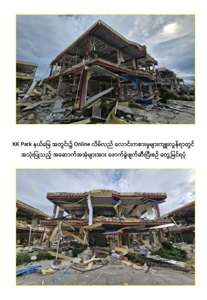 ယနေ့ ညနေ ၆ နာရီအထိ မြဝတီ-မဲ့ထော်သလေး (KK Park) နယ်မြေအတွင်း Online လိမ်လည်လောင်းကစားမှုများကျူးလွန်ရာတွင် အသုံးပြုလျက်ရှိသည့် အဆောက်အဦများ ၆၃၅ လုံးရှိသည့်အနက် ၁၇၀ လုံးကို ဖြိုချဖျက်ဆီးပြီးစီးပြီဖြစ်ကြောင်းနှင့် ကျန်ရှိနေသေးသည့် အဆောက်အအုံ ၄၆၅ လုံးကို ဆက်လက်ဖြိုချဖျက်ဆီးလျက်ရှိသည်။