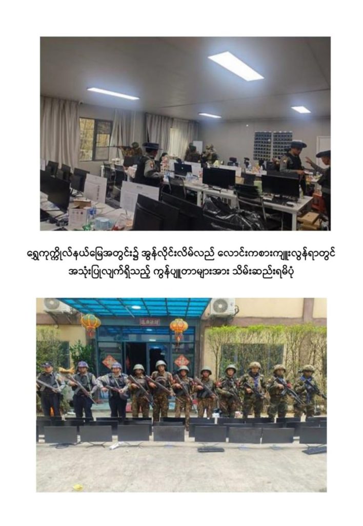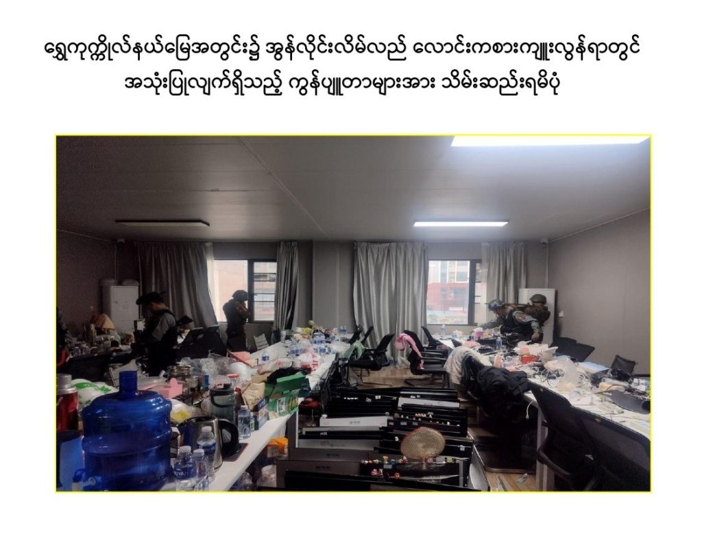 မြန်မာနိုင်ငံအစိုးရအနေဖြင့် နိုင်ငံတကာနှင့် တစ်ကမ္ဘာလုံးကို အန္တရာယ်ပေးနေသည့် Online လိမ်လည်မှုများ၊ Online လောင်းကစားမှုများ တိုက်ဖျက်ရေးလုပ်ငန်းစဉ်များကို အမျိုးသားရေးတာဝန်တစ်ရပ်အနေဖြင့် အလေးထားတိုက်ဖျက်ဆောင်ရွက်လျက်ရှိသည်။