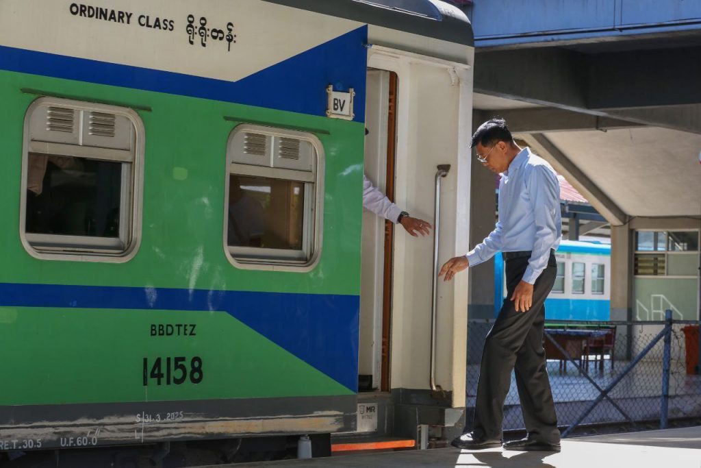 နေပြည်တော်-မန္တလေးရထားလမ်းပိုင်းတွင် ဘတ္ထရီလျှပ်စစ်စက်ခေါင်း အသုံးပြုပြီး လေအေးပေးစက်ပါ လေအိတ်ရထားတွဲဆိုင်းများဖြင့် စတင်ပြေးဆွဲခြင်း အခမ်းအနားအား ယမန်နေ့တွင် နေပြည်တော်ဘူတာကြီး အမှတ် (၁) စင်္ကြံတွင် ကျင်းပခဲ့ရာ ပို့ဆောင်ရေးနှင့် ဆက်သွယ်ရေးဝန်ကြီးဌာန ပြည်ထောင်စုဝန်ကြီး ဦးမြထွန်းဦးက တက်ရောက်ဖွင့်လှစ်ပေးခဲ့သည်။