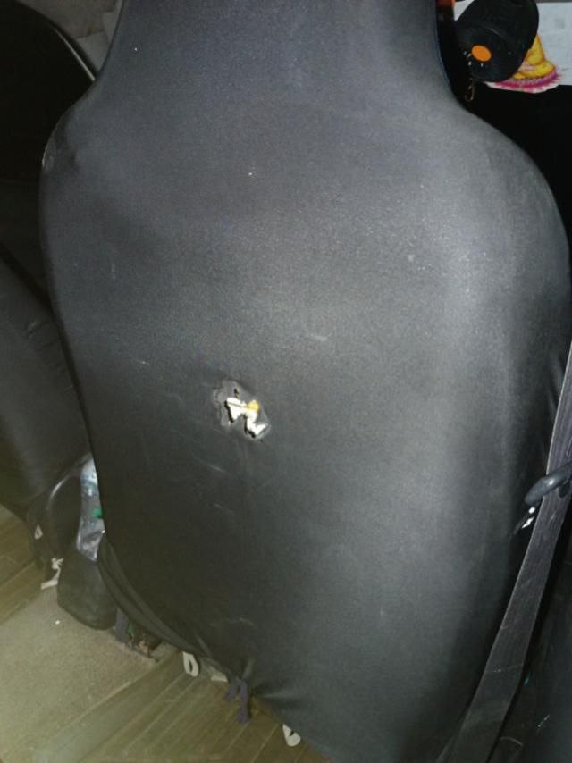 ◾ ပစ်ခတ်သည့်ကျည်က ဒရိုင်ဘာထိုင်ခုံကို ဖောက်ဝင်ပြီး ကျောကိုဖောက်ဝင်သွားသော်လည်း ရင်ဘတ်က ပေါက်မထွက်ဘဲ ရင်ညွန့်တွင် ကျည်ထောက်နေခဲ့