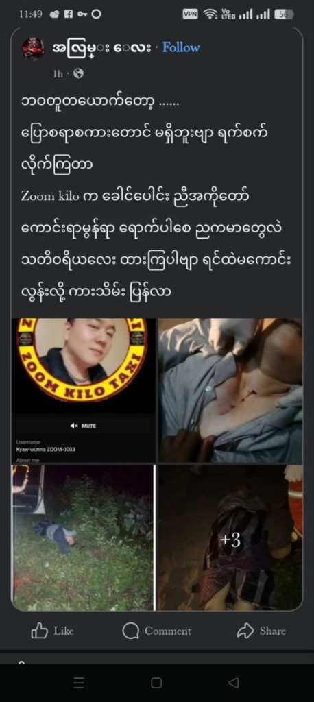 တပ်မတော်နဲ့ နီးစပ်တဲ့ တယ်လီဂရမ် ချန်နယ်တချို့မှာတော့ သေဆုံးသူက Foog Blogger ကိုကျော်ဝဏ္ဏလို့ သိရပြီး PDF တွေ လုပ်ကြံတယ်လို့ ဆိုထားပါတယ်။ သေဆုံးသူက Zoom Kilo Taxi ယာဉ်မောင်းအဖွဲ့ဝင်ဖြစ်ကာ သူမောင်းနှင်တဲ့ ယာဉ်က Probox အမျိုးအစား အဖြူရောင်ယာဉ်ပါ။